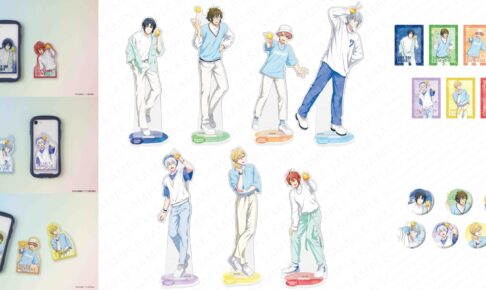 レモンを手にしたIDOLiSH7のメンバーたちを一人ずつ描いた「アクリルスタンド」や「クリアファイル」をはじめ、スマホサイズの「モバイルステッカー」や「トレーディング缶バッジ」の4アイテムがラインナップする。