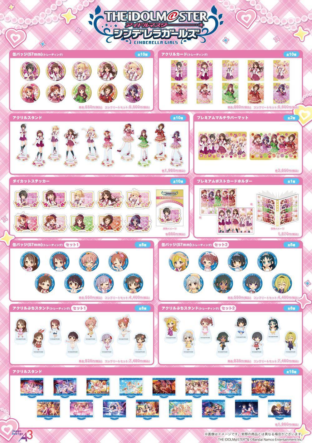 「平成アイドル風衣装」をテーマに描かれた、小日向美穂・佐久間まゆ・櫻井桃華・島村卯月・双葉杏・安部菜々・五十嵐響子・緒方智絵里・道明寺歌鈴・早坂美玲たちのイラストを使用した「缶バッジ」「アクリルスタンド」「プレミアムポストカードホルダー」などがラインナップする。