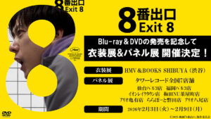 「コタケクリエイト」による大人気の無限ループゲームを原作とした実写映画「8番出口」のBlu-ray&DVD発売を記念し、「8番出口 衣装展」が、HMV&BOOKS SHIBUYAにて2026年2月3日より開催。また、同期間中、タワーレコード全国7店舗にて「8番出口 パネル展」も実施される。