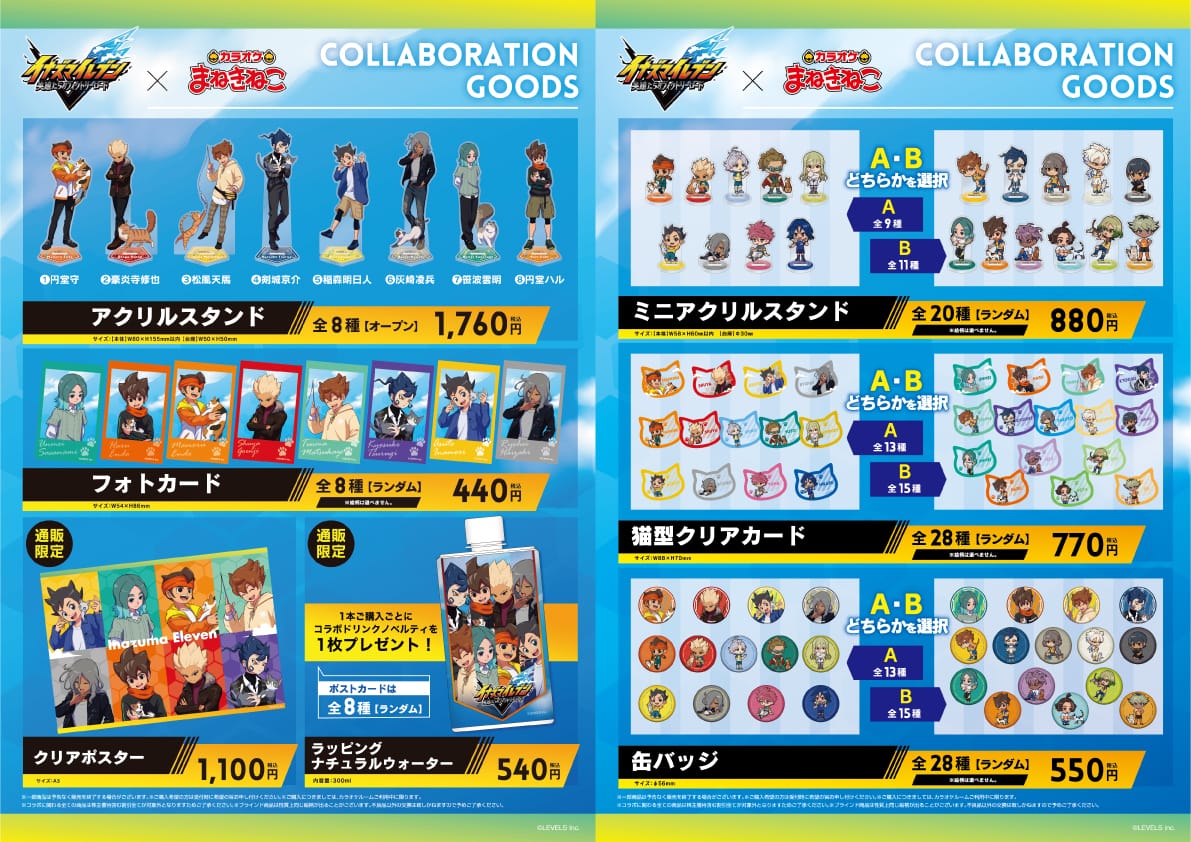 「イナイレ × まねきねこ」コラボでは、人気キャラクターたちをイメージしたコラボドリンクや、猫と戯れる描き下ろしイラストを使用したコラボグッズが登場!