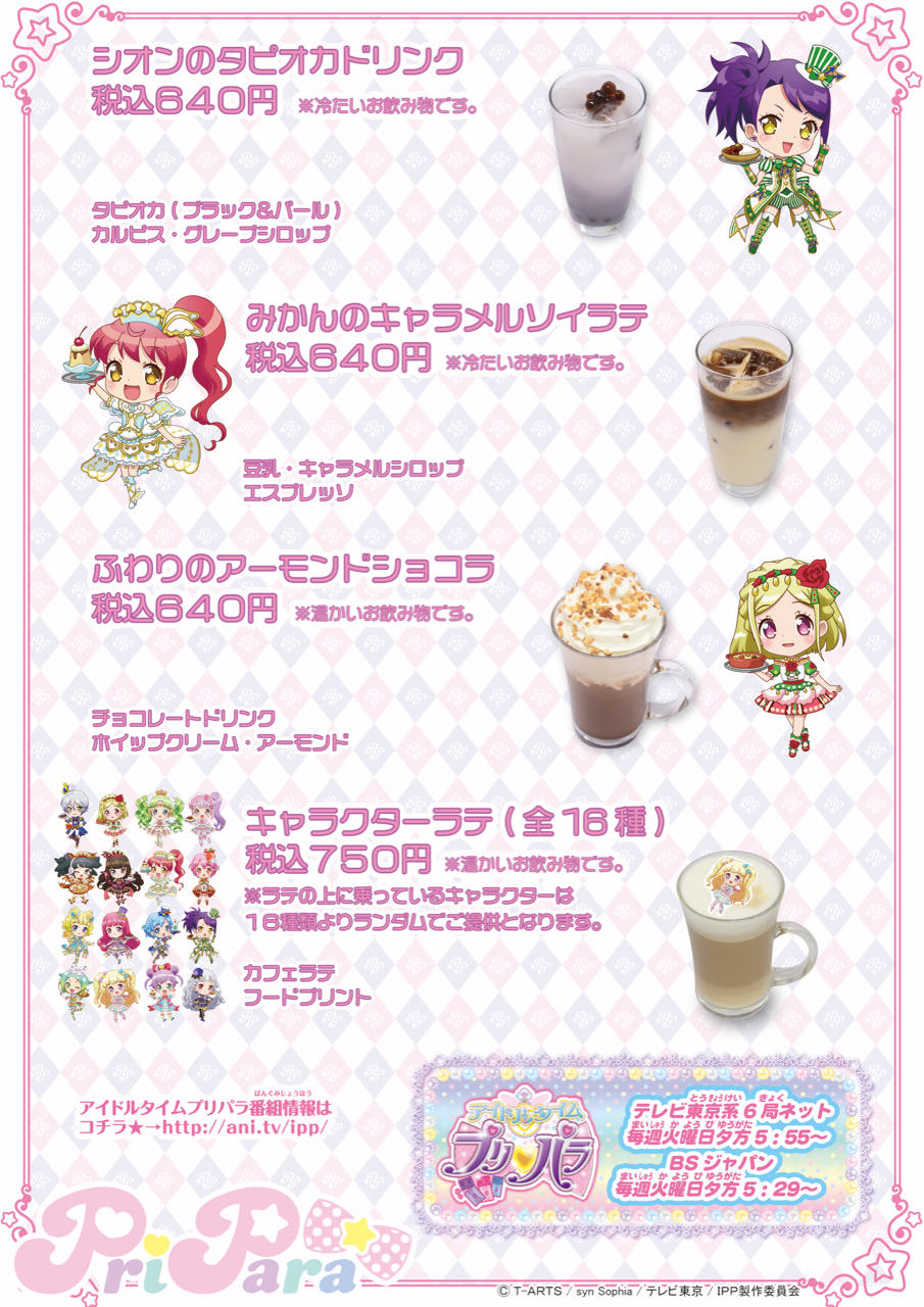 「アイドルタイム プリパラ」x キャラウムカフェ池袋のメニュー