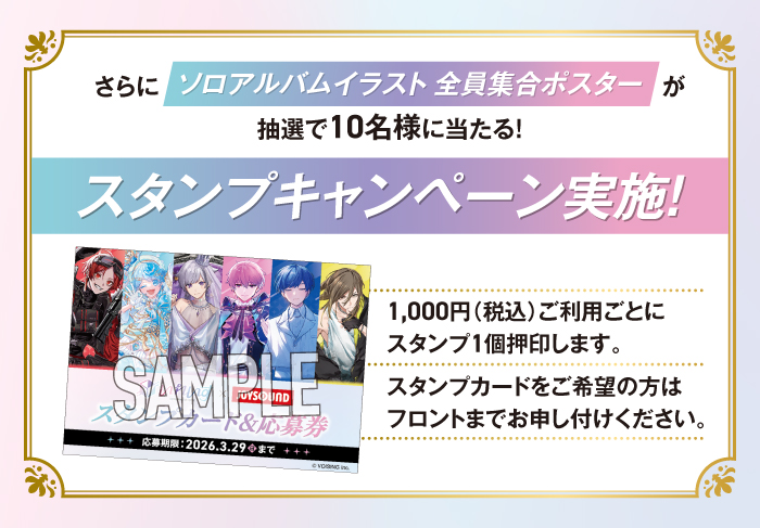 さらに、「ソロアルバムイラスト 全員集合ポスター」が抽選で当たるスタンプキャンペーンも!