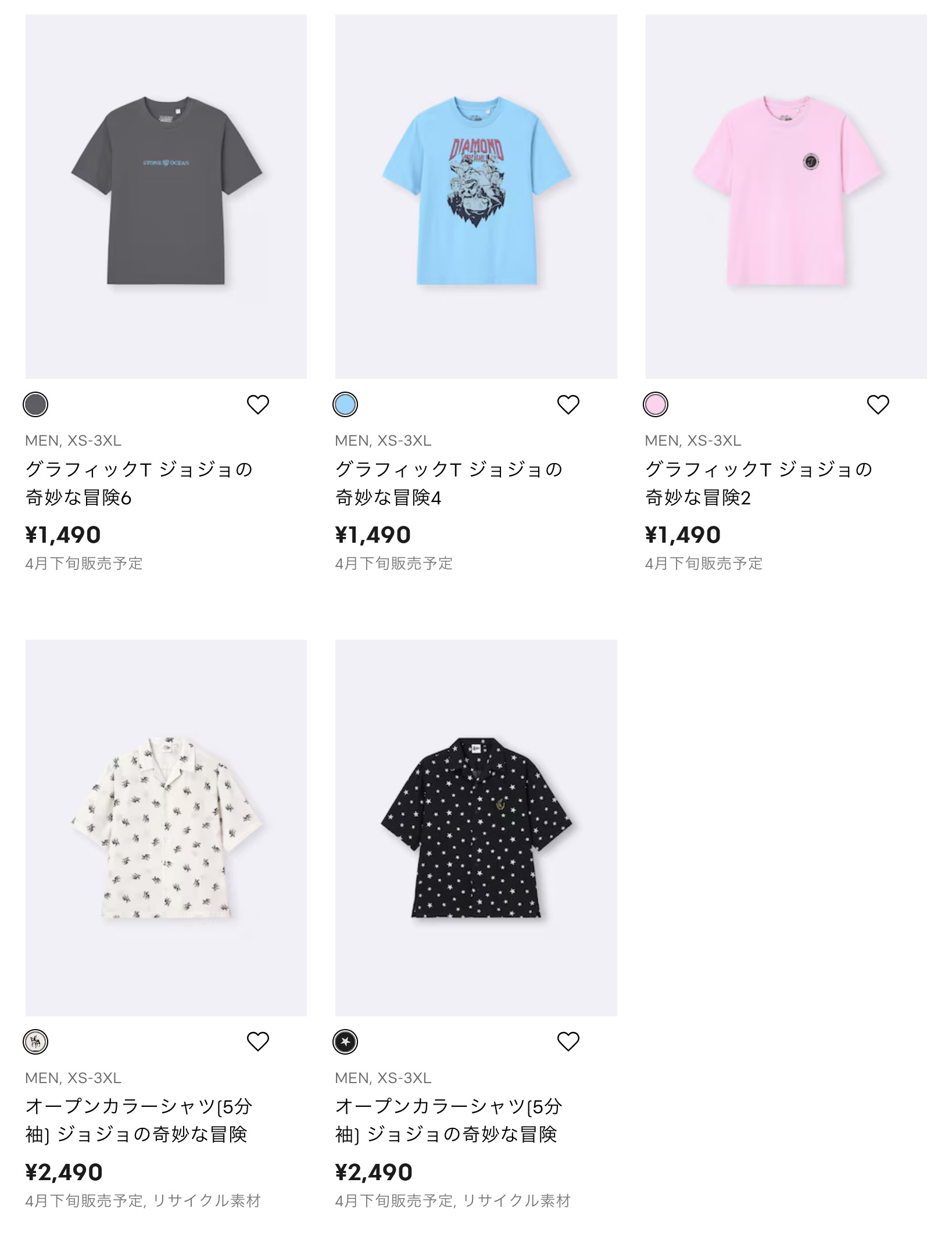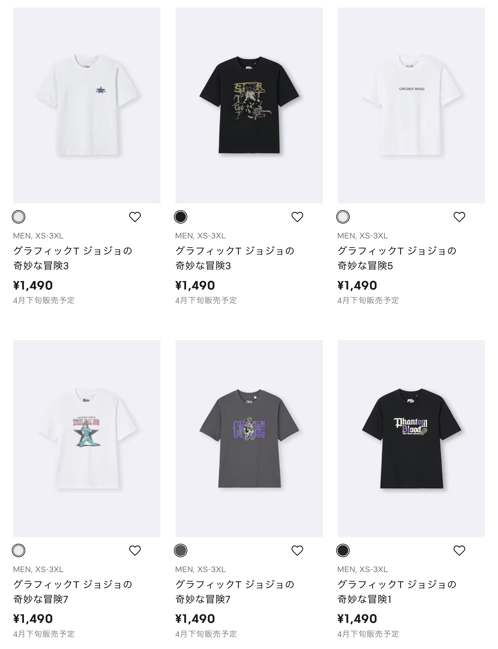荒木飛呂彦先生による人気漫画を原作としたアニメ「ジョジョの奇妙な冒険」× GU全国にて、2026年4月24日よりコラボウェアが発売される。