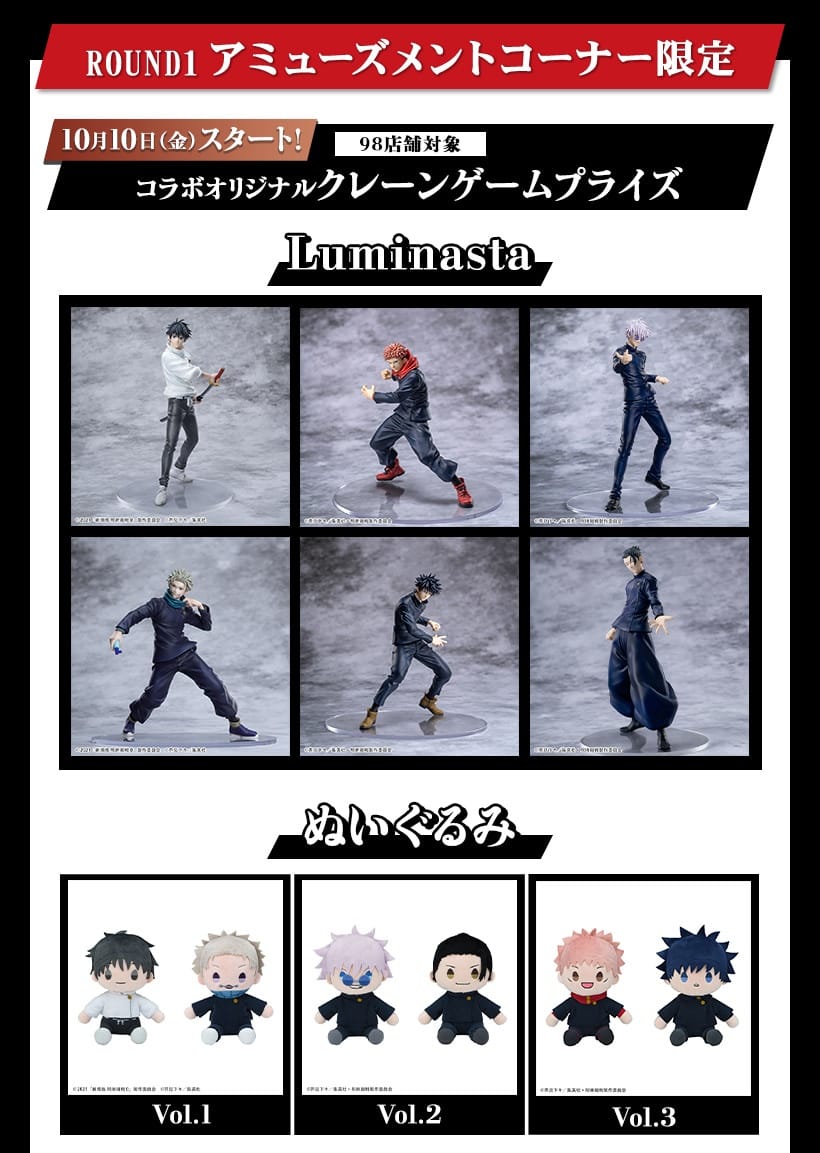 描き下ろしデザインを使用した#ラウンドワン限定プライズ 全5アイテムが登場!⬜️乙骨憂太&狗巻棘 フィギュア