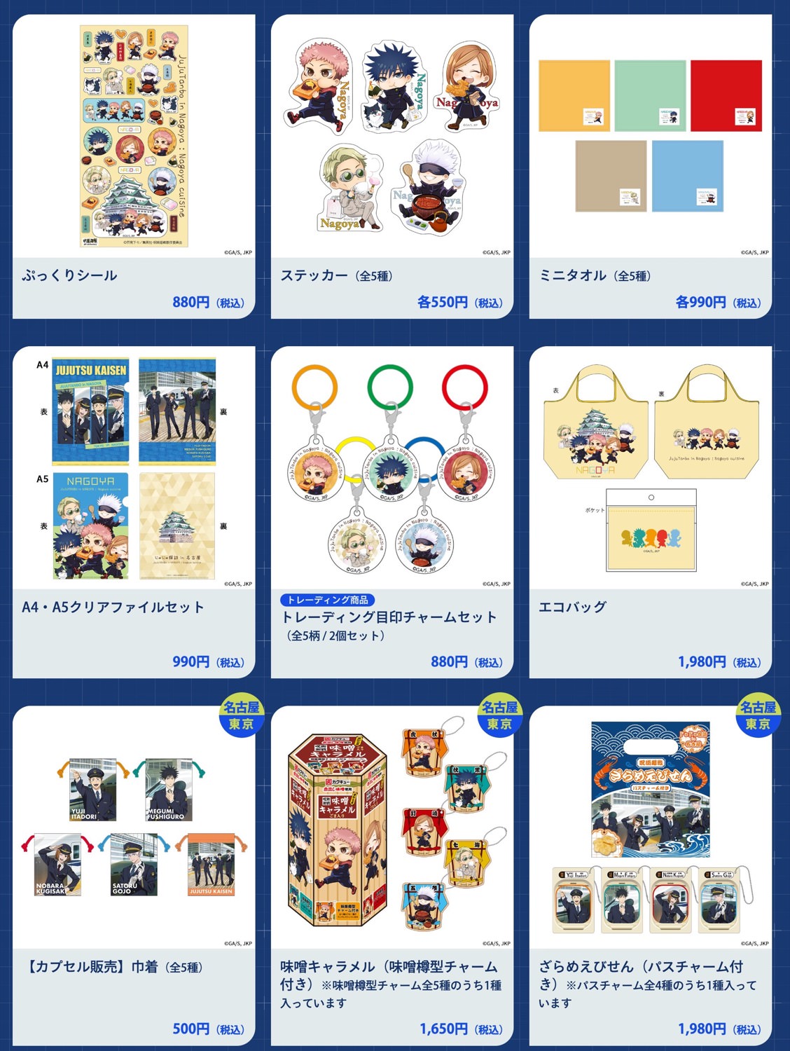 『じゅじゅ探訪 in 名古屋』では、名古屋の対象店舗にて名古屋会場限定グッズを含むオリジナルグッズが販売される。