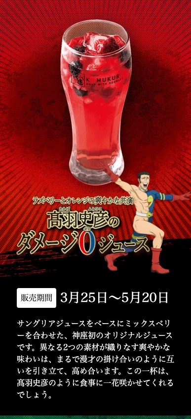 さらに、コラボメニューおよびグッズを2点ごとの注文・購入で限定ノベルティーがもらえるほか、どうとんぼり神座 御堂筋店・どうとんぼり神座 アトレ恵比寿店では、店舗ラッピングおよびスペシャルメニューの販売も実施される。
