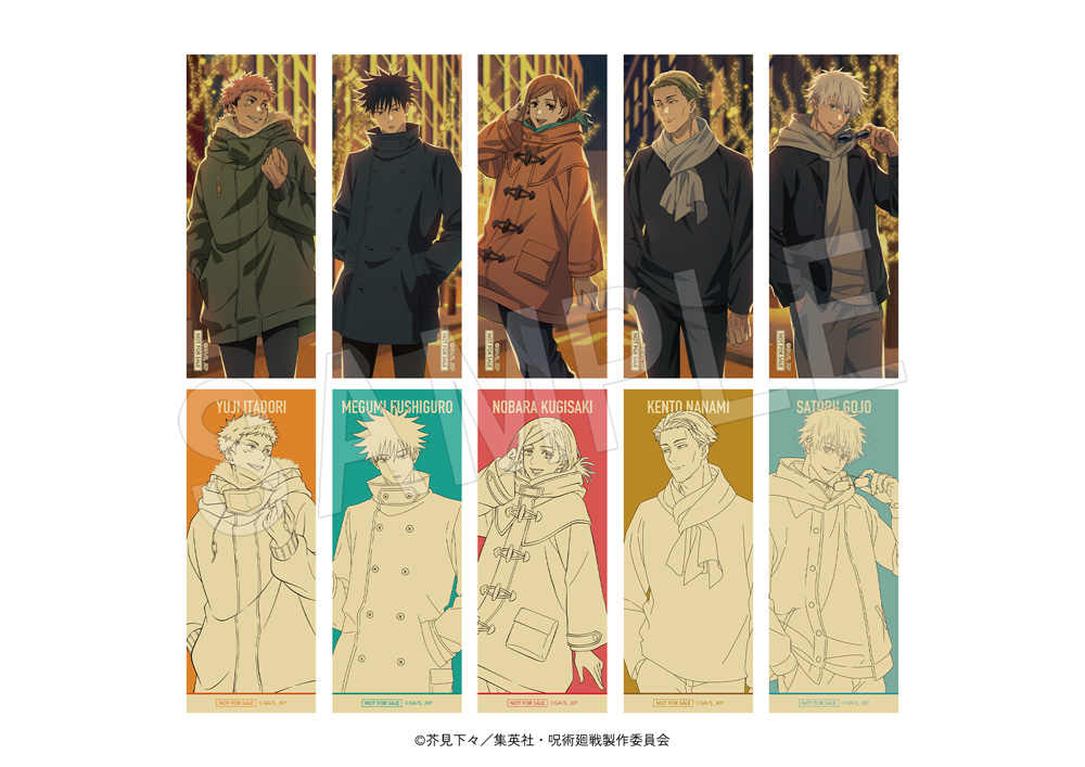 虎杖悠仁・伏黒恵・釘崎野薔薇・五条悟・七海建人たちが、綺羅びやかなイルミネーションを背景に冬服に身を包む描き下ろしイラストや、「ハロウィン」の仮装をしたミニキャライラストのコラボグッズが展開される。