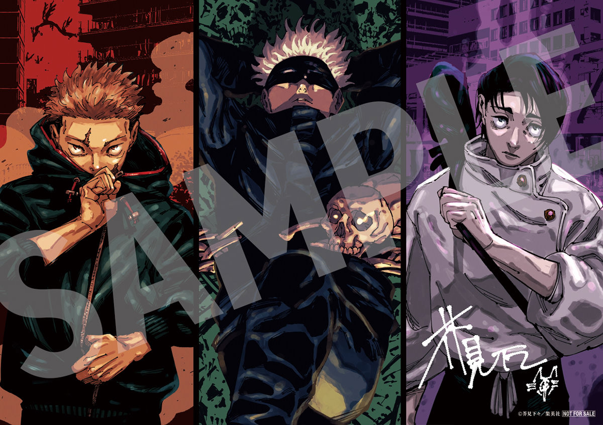 原作者・芥見下々先生による虎杖・五条・乙骨それぞれを描いたA5 サイズのビジュアルボードとなっている。