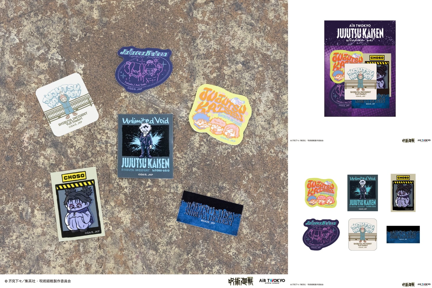 五条悟や虎杖悠仁、伏黒恵、釘崎野薔薇、東堂葵、脹相らの印象的なシーンを、かわいらしいデフォルメタッチで描いたTシャツやパーカー、ステッカー、アクリルジオラマなどがそろう。AIR TWOKYOコラボならではの遊び心を感じるコレクションだ。