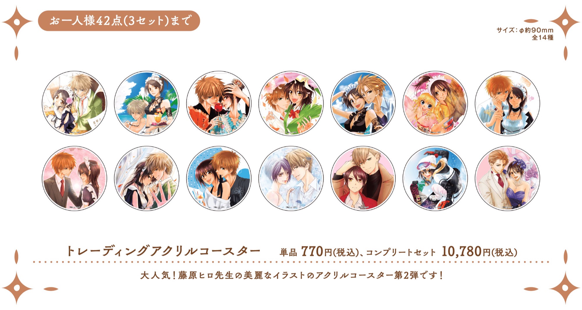2026年3月19日〜5月24日まで開催される「会長はメイド様!」カフェでは、描き下ろしイラストを使用した「アクリルスタンド」「アクリルコースター」「フォト風カード」などのコラボカフェ限定グッズが多数登場!