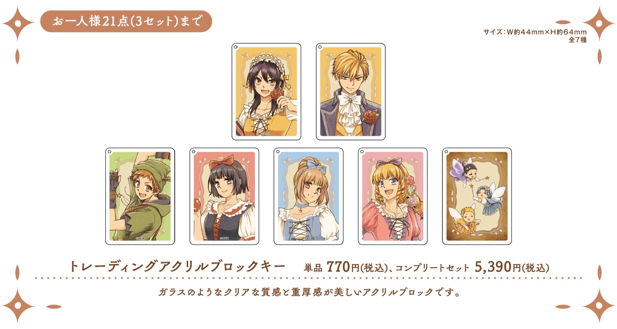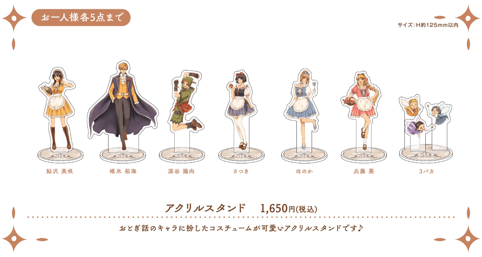 さらに、美咲や碓氷たちがおとぎ話のキャラクターに扮した描き下ろしイラストを使用したオリジナルグッズや、「オリジナルコースター」「イラストカード」「クリアしおり」などのノベルティーも!