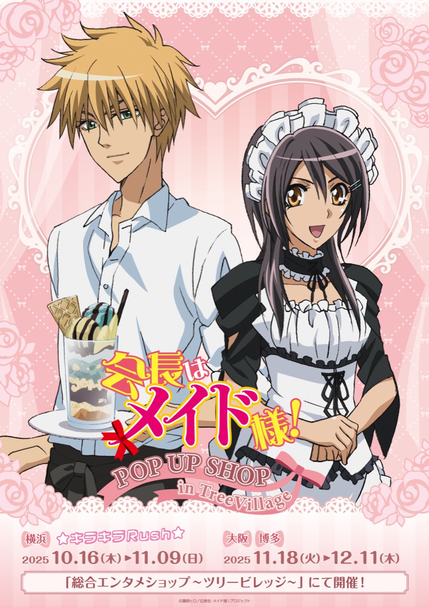 白泉社「LaLa」にて連載された、藤原ヒロ先生による学園の生徒会長でありながら、メイド喫茶でアルバイトをするヒロインの秘密と恋愛模様を描いたラブコメディを原作としたTVアニメ「会長はメイド様!」のポップアップストアが、神奈川/大阪/福岡にて2025年10月16日〜12月11日まで開催される。 (※開催期間は店舗により異なります。)