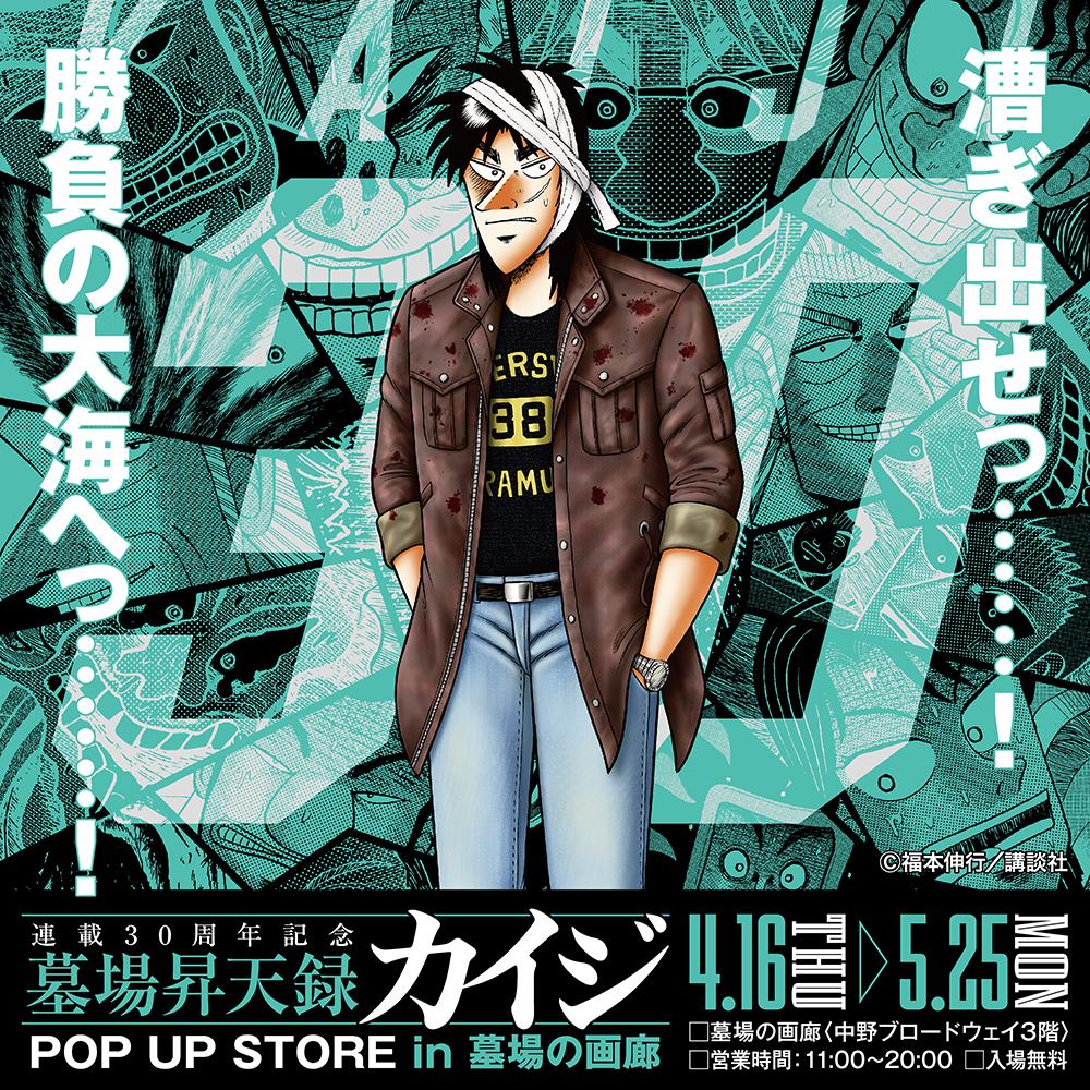 連載30周年を迎える福本伸行先生による人気漫画「カイジ」シリーズのポップアップストア『墓場昇天録カイジ POP UP STORE』が、中野ブロードウェイ 墓場の画廊にて2026年4月16日〜5月25日まで開催される。