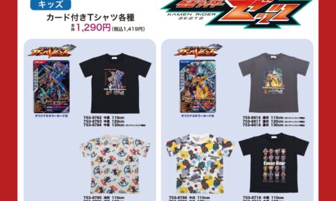 「仮面ライダーゼッツ × しまむら」では、「仮面ライダーバトル ガンバレジェンズ」のカード1枚が付属したキッズ向けのTシャツ各種が登場。