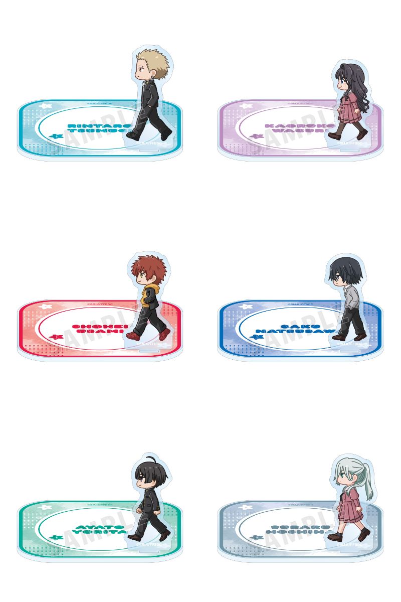 紬 凛太郎、和栗薫子、宇佐美翔平、夏沢 朔、依田絢斗、保科 昴ら6人を描いた「缶バッジ」や「アクリルスタンド」などトレーディング商品をはじめ、「アクリルスタンド付きコースター」など全3種がラインナップ。