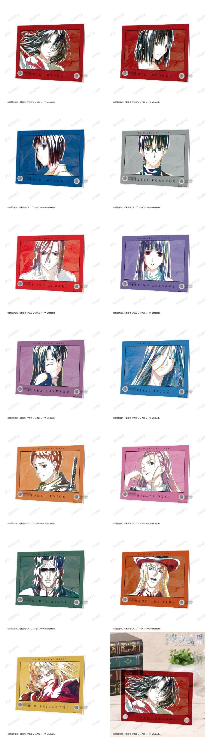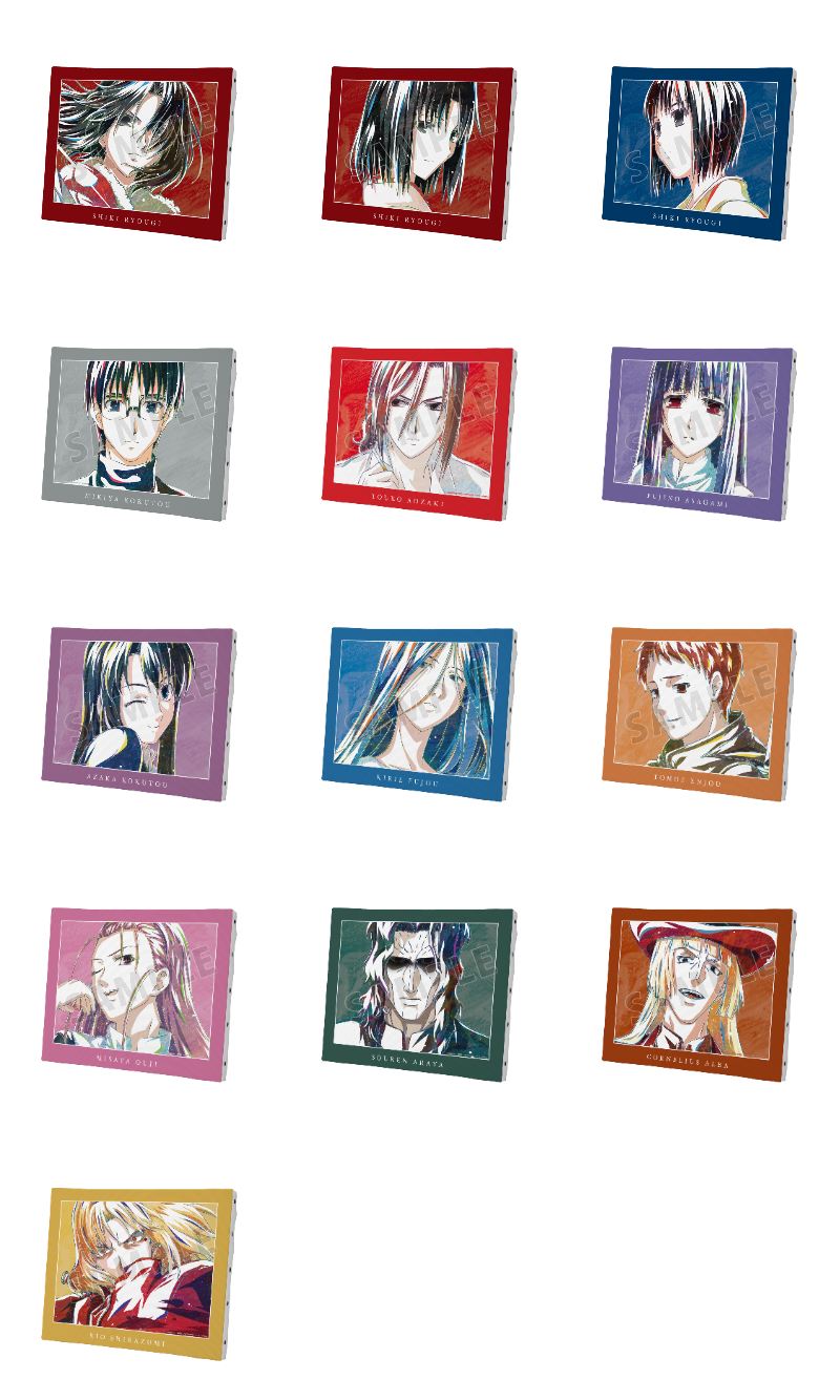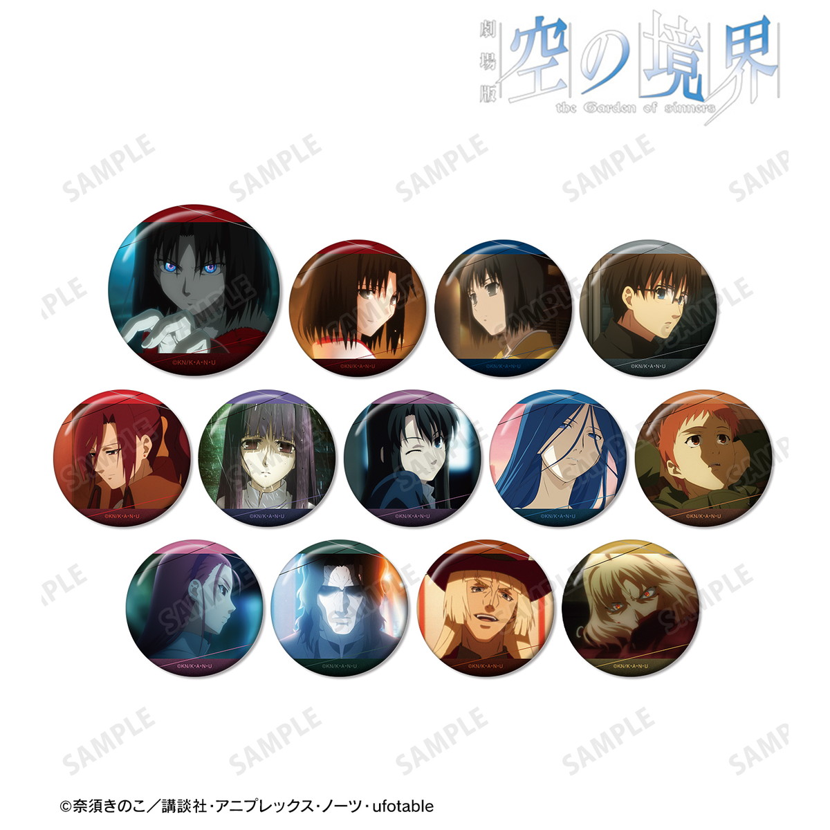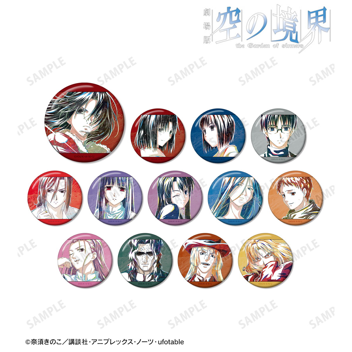 ファン待望となる再販アイテムには、両儀式、両儀織、黒桐幹也、蒼崎橙子、浅上藤乃、黒桐鮮花、巫条霧絵、臙条巴、黄路美沙夜、荒耶宗蓮、コルネリウス・アルバ、白純里緒らの印象的なシーンを集めた「缶バッジ」などトレーディング商品が多数ラインナップ。