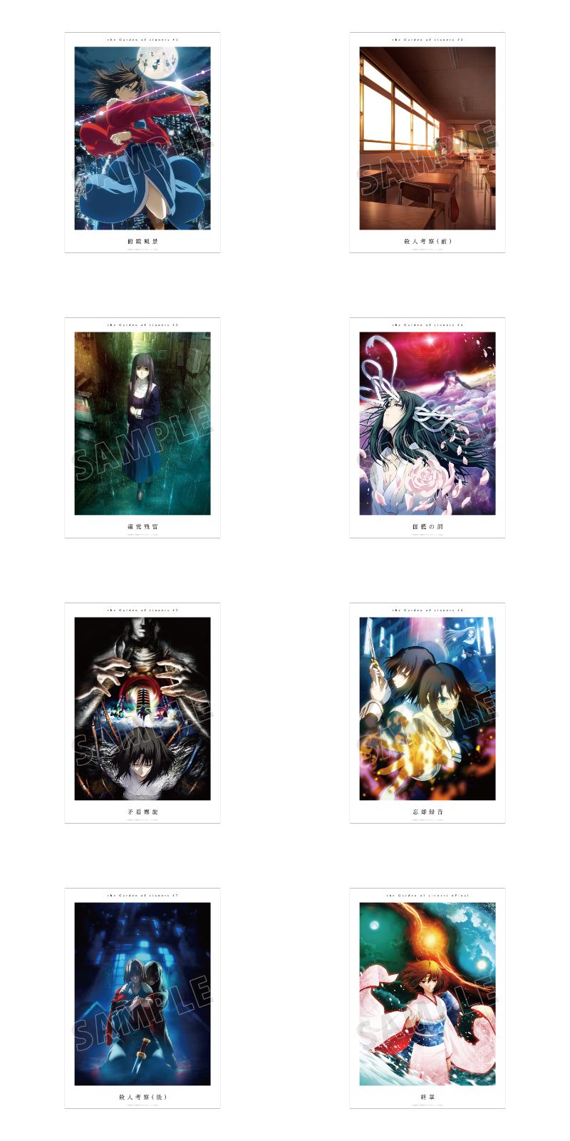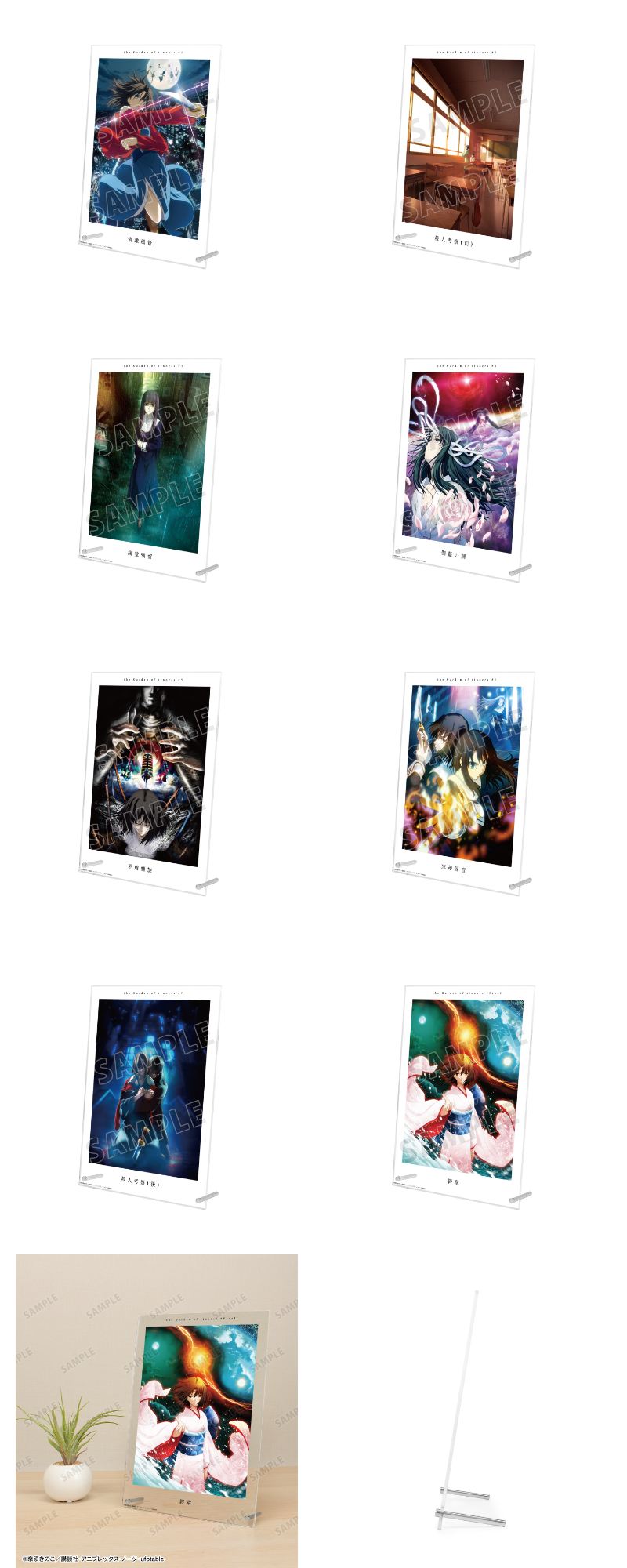 両儀式、両儀織、黒桐幹也、蒼崎橙子、浅上藤乃、黒桐鮮花ら人気キャラクターたちを魅力的なタッチで描いた「Ani-Artシリーズ」や、作中の印象的なシーンを集めた「場面写」アイテムが再登場。 各章のキービジュアルをデザインしたオリジナルグッズも必見。