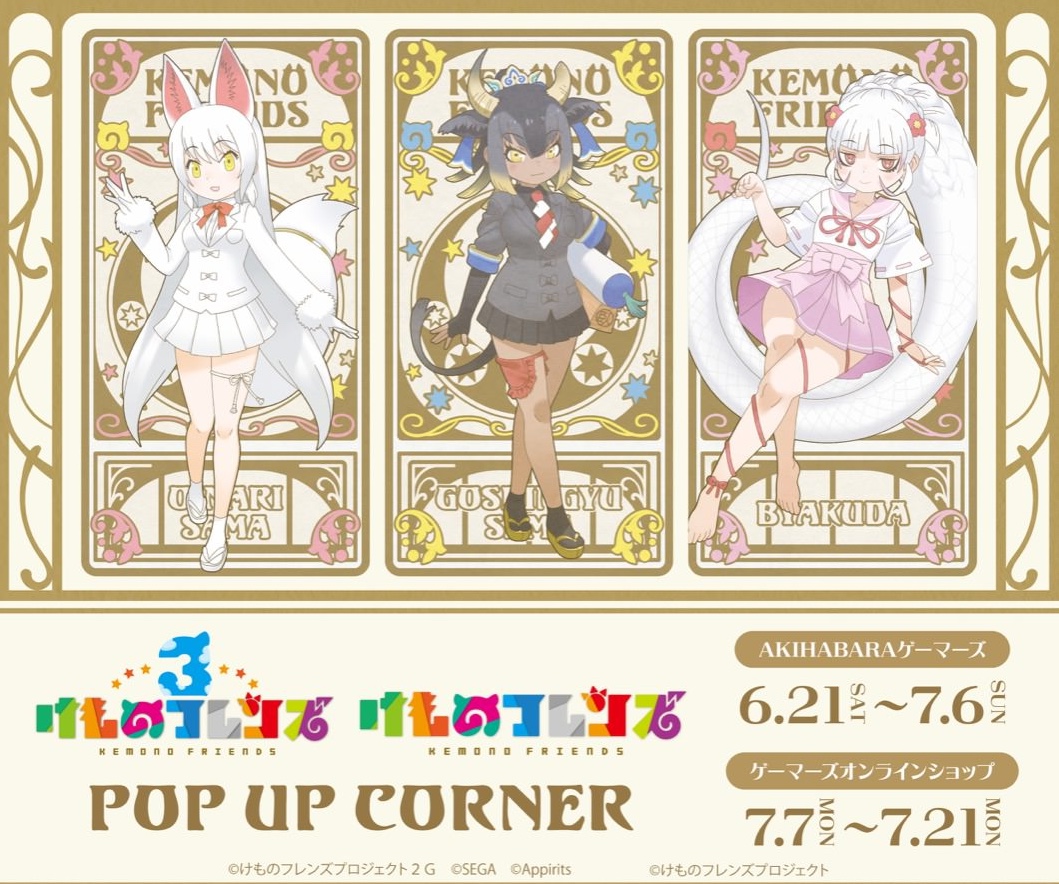 メディアミックスプロジェクト「けものフレンズ」のポップアップストアが、AKIHABARAゲーマーズ本店にて2025年6月21日〜7月6日まで開催される。