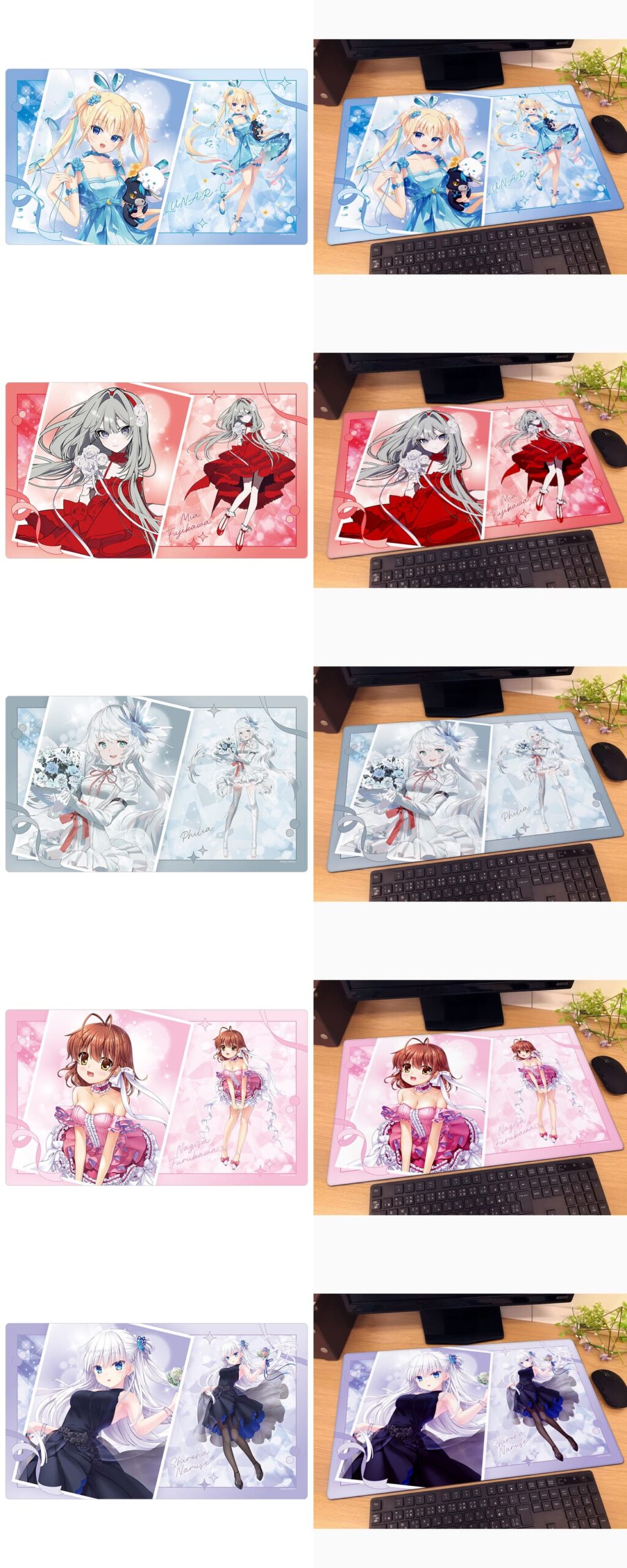 さらには『LOOPERS』のミア、『LUNARiA -Virtualized Moonchild-』のるなきゅん、『終のステラ』のフィリア、最新作『anemoi』の辻倉朱比華まで7作品から9人のヒロインがそろう。