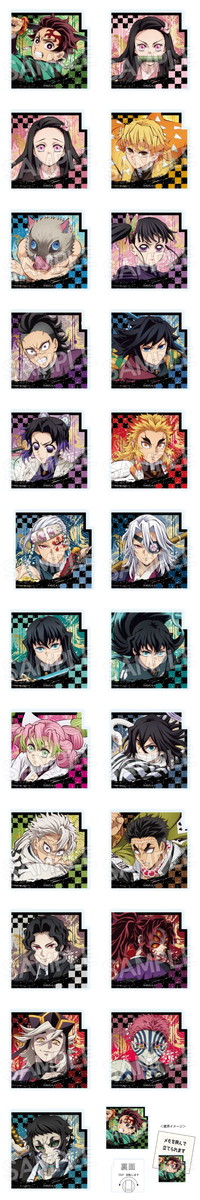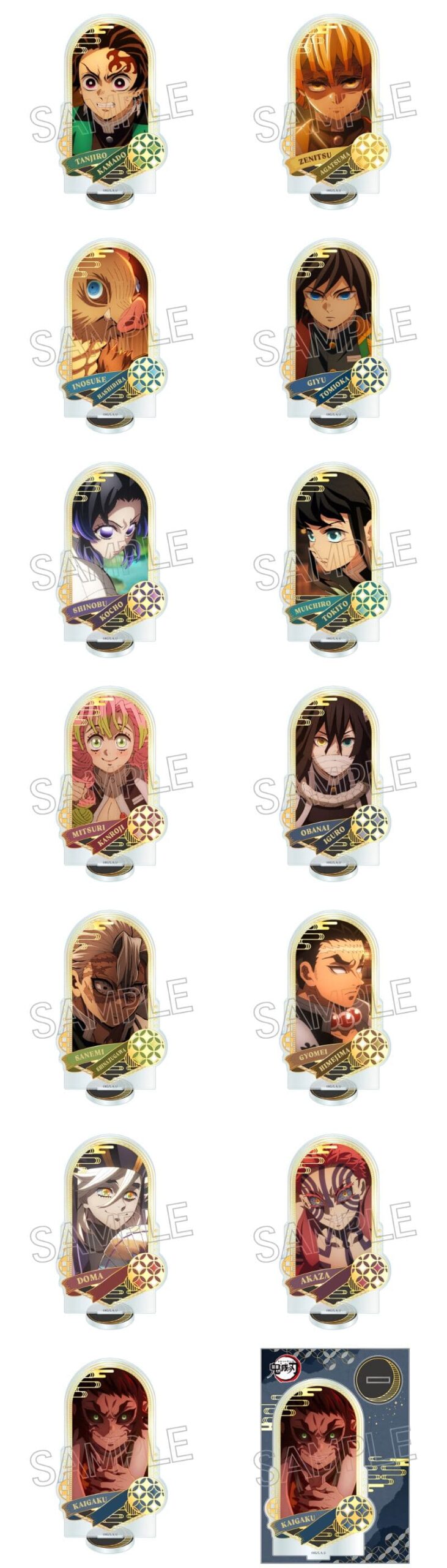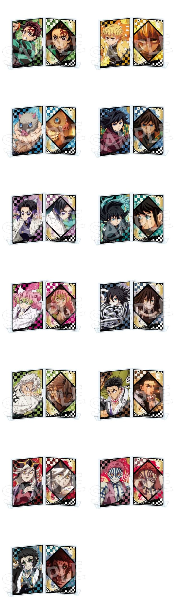 竈門炭治郎 / 竈門禰豆子 / 我妻善逸 / 嘴平伊之助 / 栗花落カナヲ / 不死川玄弥 / 冨岡義勇 / 胡蝶しのぶ / 煉獄杏寿郎 / 宇髄天元 / 時透無一郎 / 甘露寺蜜璃 / 伊黒小芭内 / 不死川実弥 / 悲鳴嶼行冥 / 鬼舞辻無惨 / 黒死牟 / 童磨 / 猗窩座 / 獪岳
