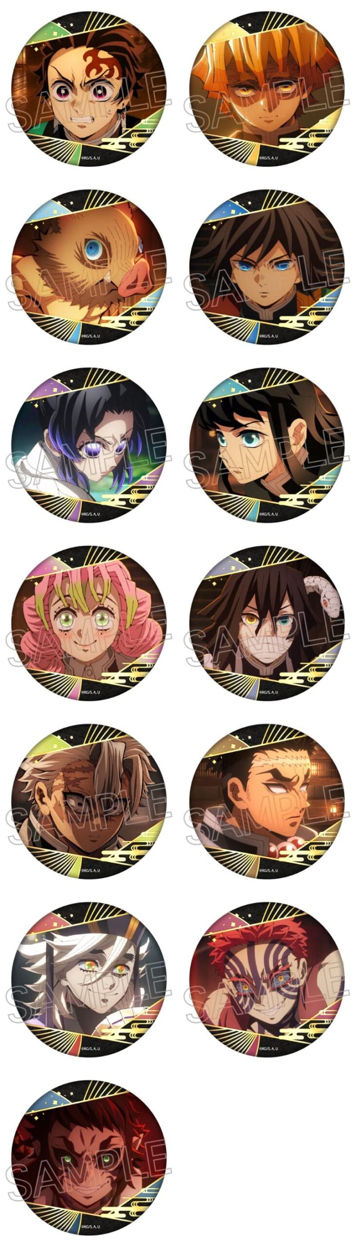 デザインの一部に箔押し加工をあしらった、ツインクルによる『箔押し』シリーズの「缶バッジ」や「アクリルスタンド」、童磨・猗窩座・獪岳ら3人が新たに追加された「フォトフレスタンド Vol.4」など全5種がラインナップ。