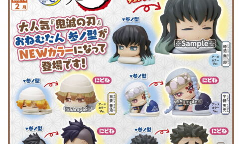 2021年2月中旬より順次発売予定の「鬼滅の刃 おねむたん 参ノ型 にどね」は、鬼滅の刃に登場する「宇髄天元」や「我妻善逸」、「玄弥」、「時透無一郎」、「悲鳴嶼行冥」たちのデフォルメフィギュアで就寝中や寝起きなど、眠たいシチュエーションのポーズが可愛い全5種がラインナップ!