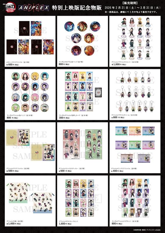この「特別上映版」の公開を記念し、2026年2月21日 正午12時より追加物販が決定。アニプレックスオンラインとufotable劇場物販特設サイトにて通販が行われる。