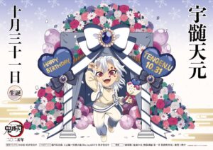 吾峠呼世晴先生による大人気漫画を原作とし、劇場版「無限城編 第一章 猗窩座再来」も大ヒット上映中のアニメ『鬼滅の刃』に登場する、鬼殺隊の“音柱”宇髄天元が誕生日を迎えることを記念し、ufotable公式X (旧Twitter) にて2025年10月31日に描き下ろしミニキャライラストが公開された。