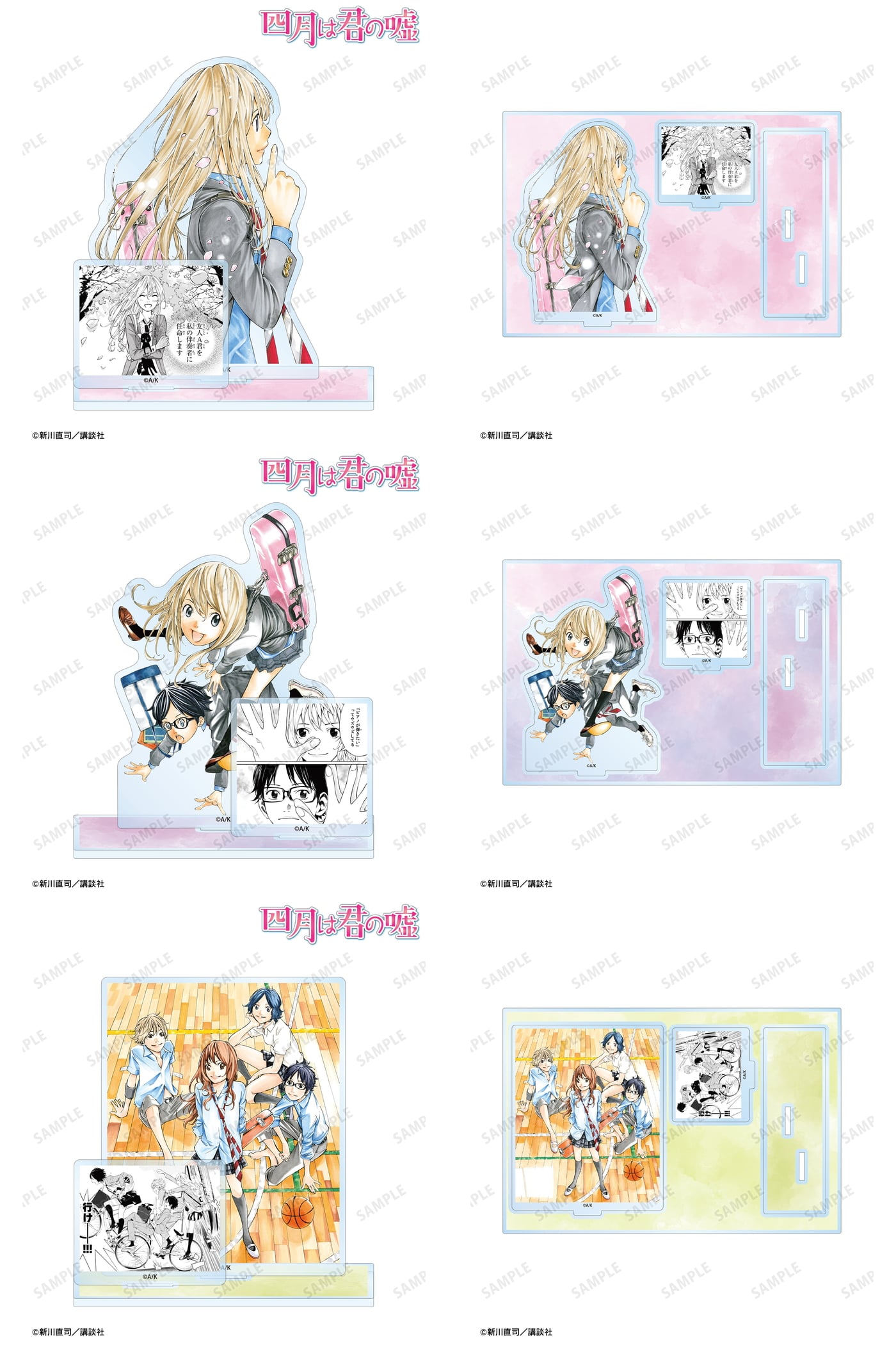 漫画『四月は君の嘘』の新作グッズは、新川直司先生の美麗イラストを楽しめる名場面を切り取ったアイテムが並ぶ。