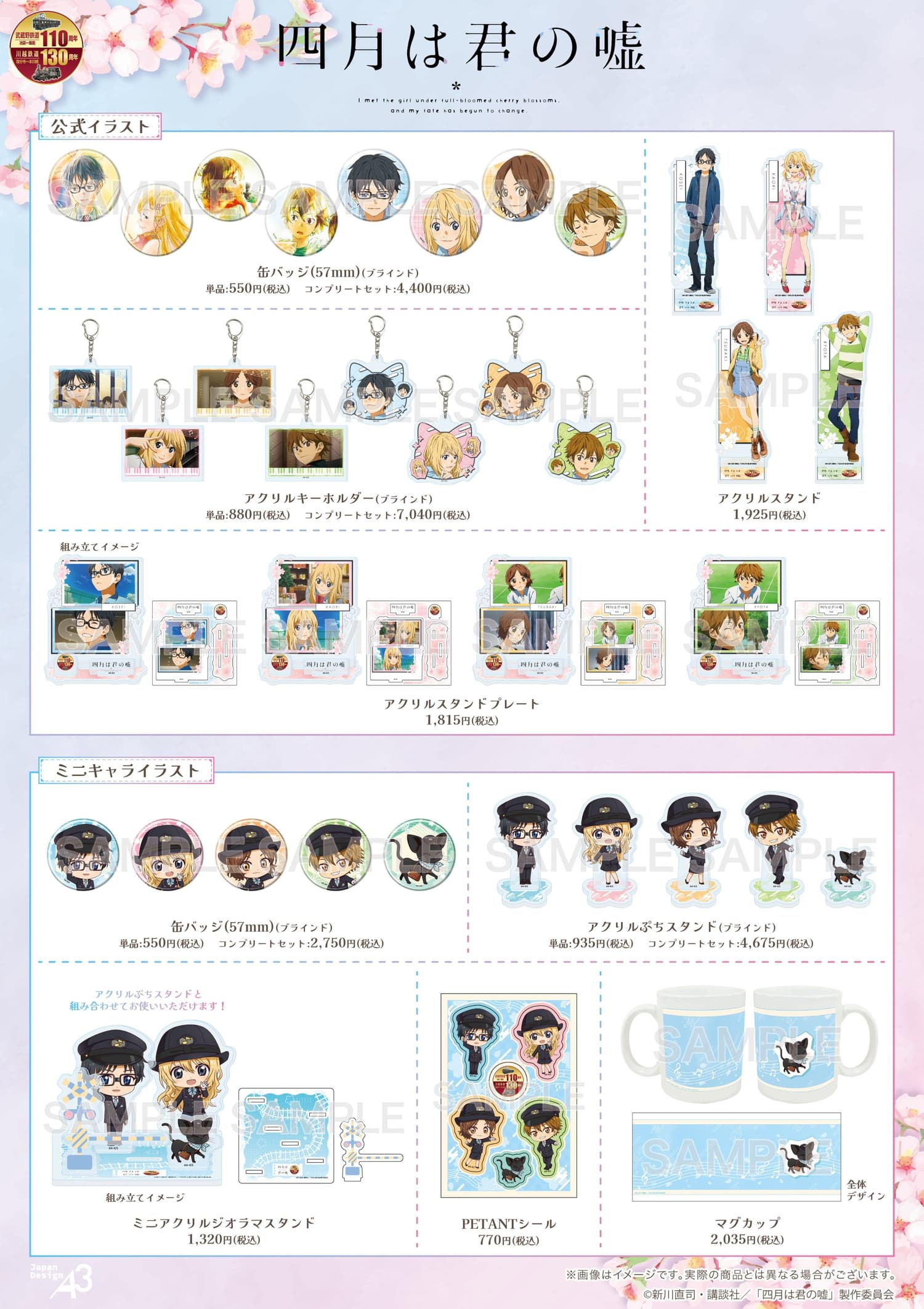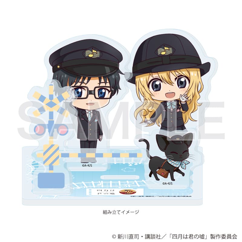 駅員姿の有馬公生、宮園かをりらメインキャラクターのミニキャラや公式イラスト使用グッズなど、全6種21点がラインナップ!