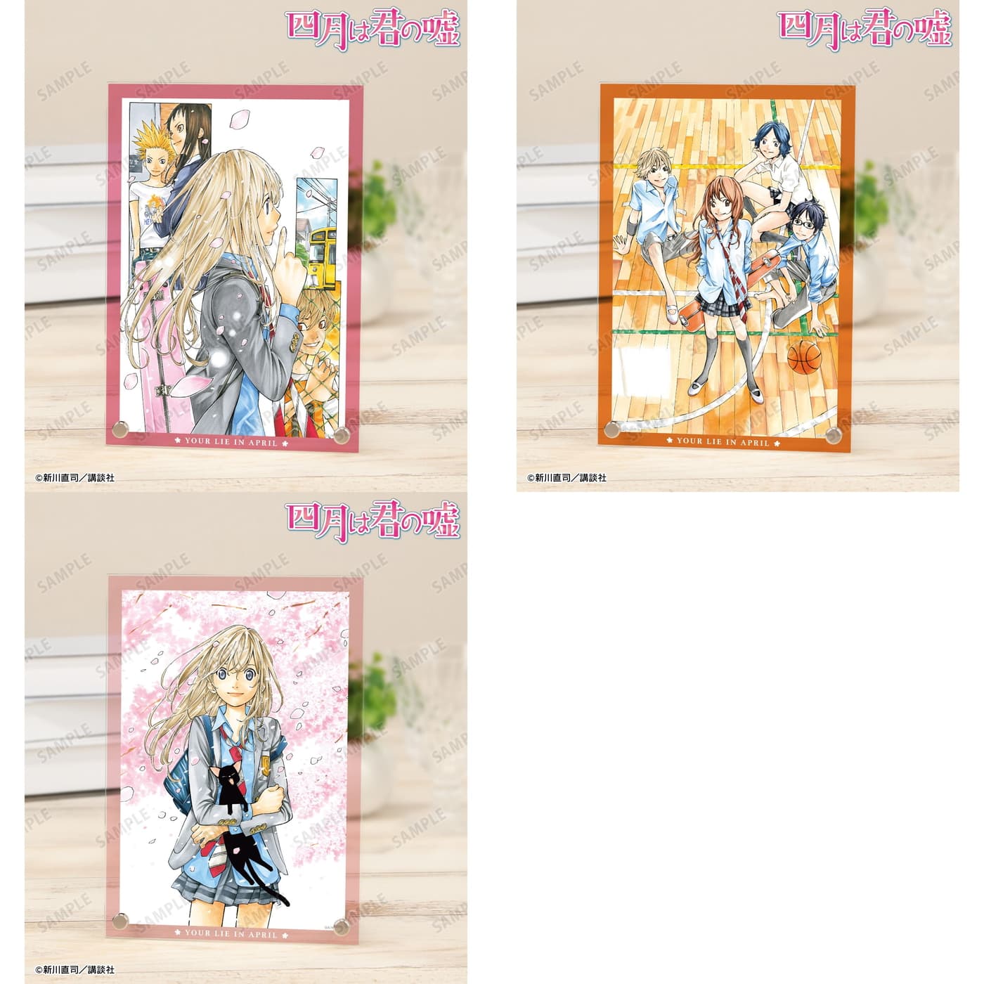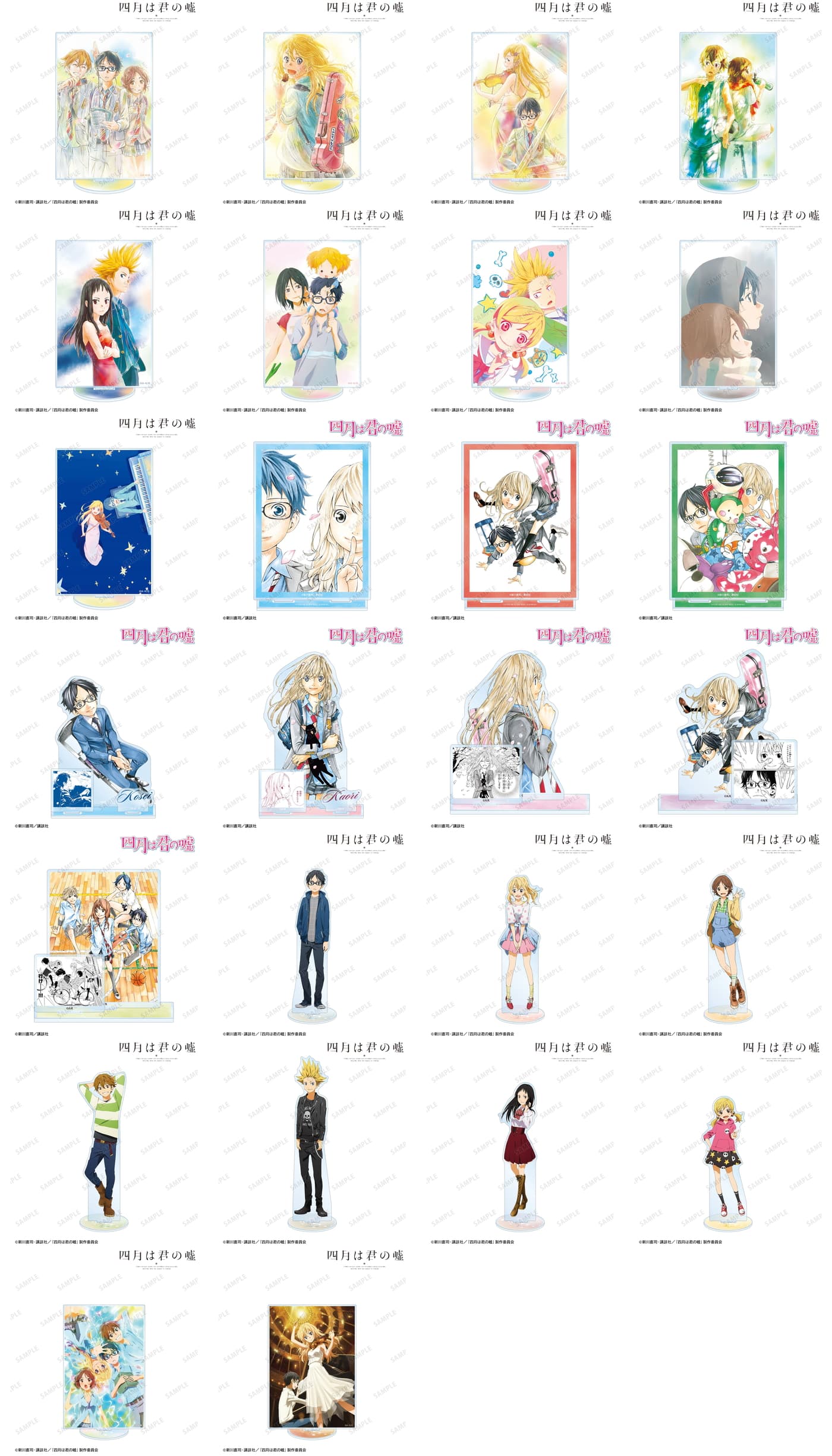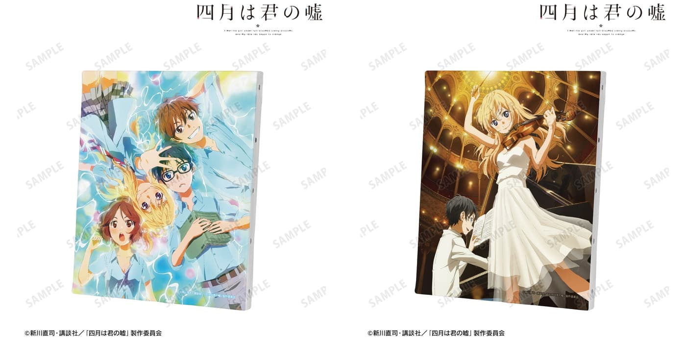 原作完結巻である11巻表紙イラストを使用した「アクリルパネル」をはじめ、有馬公生、宮園かをりら主要キャラに加え、相座武士、井川絵見、相座凪らも揃う「BIGアクリルスタンド」や「BIGアクリルキーホルダー」も展開される。