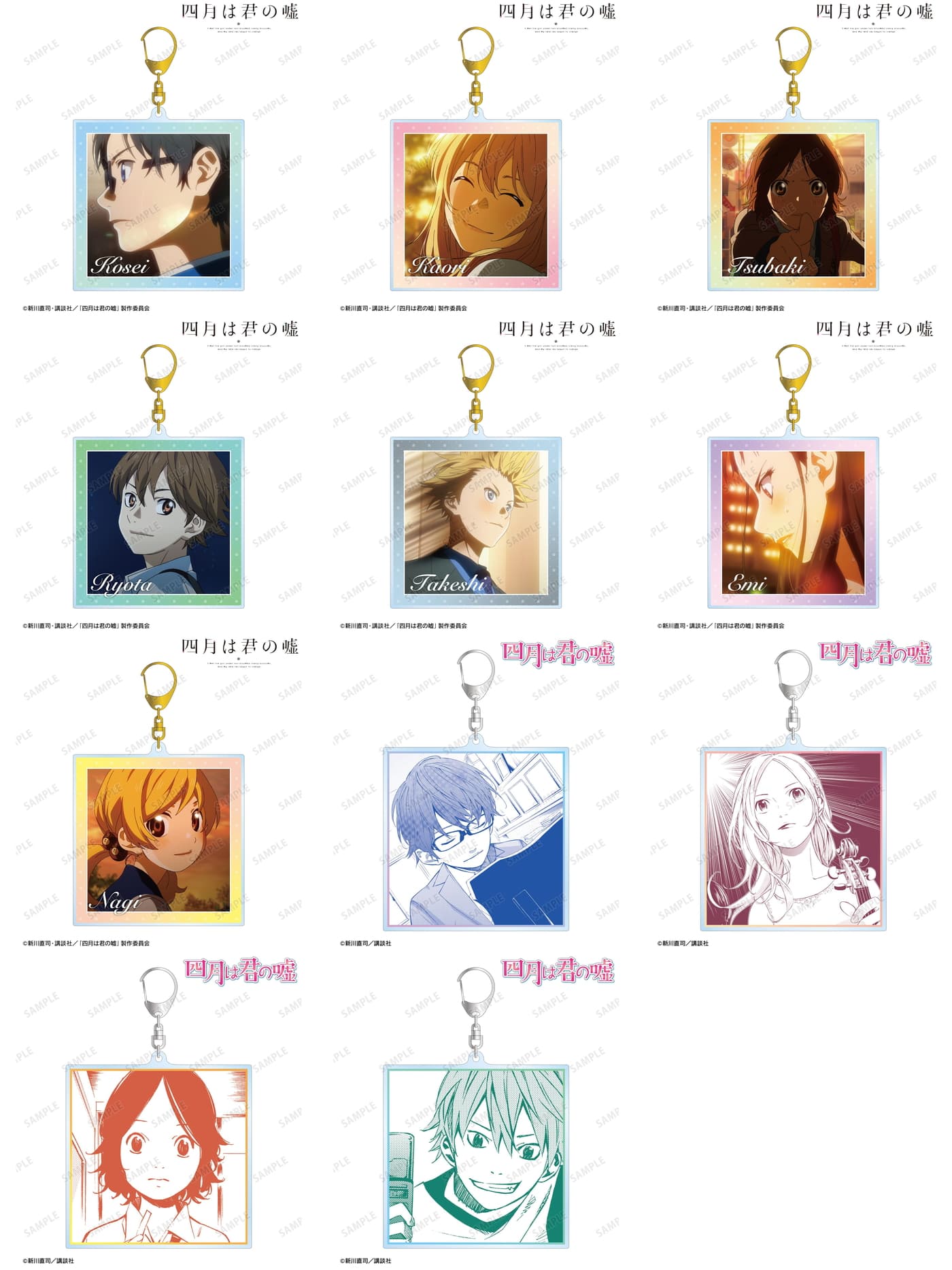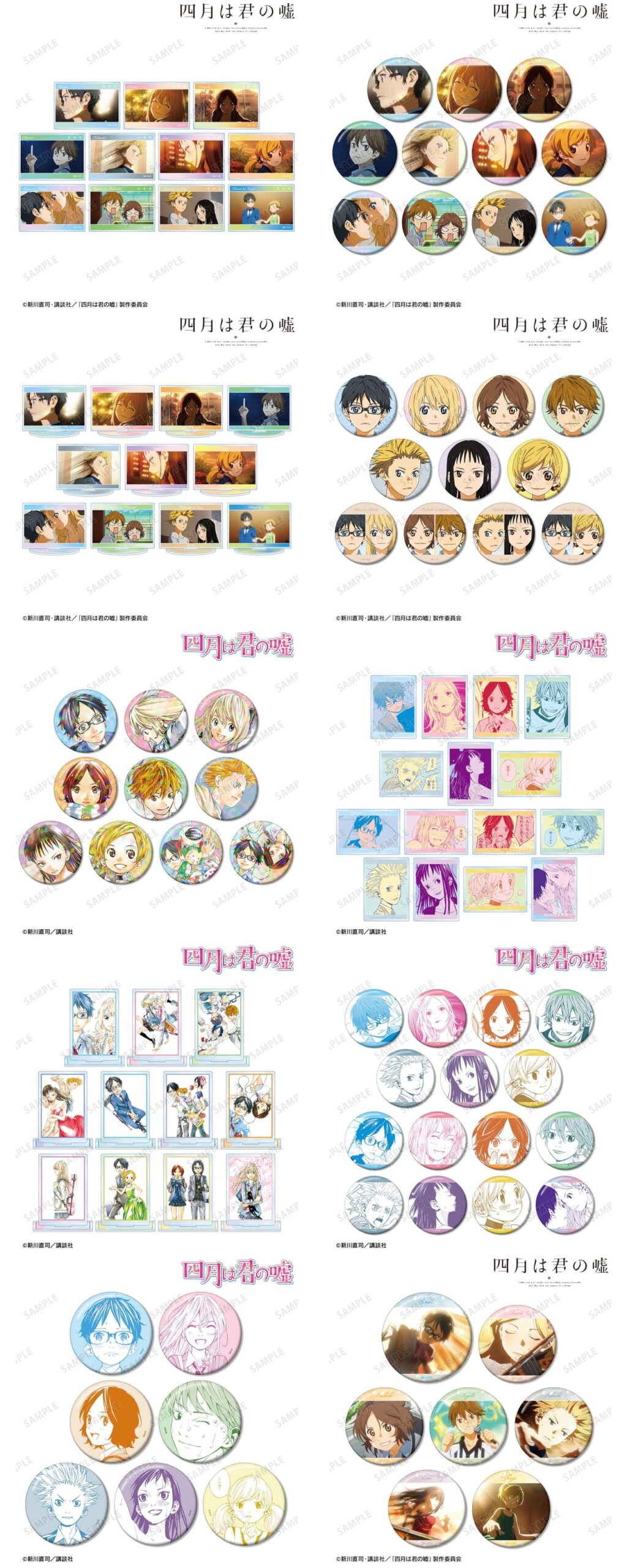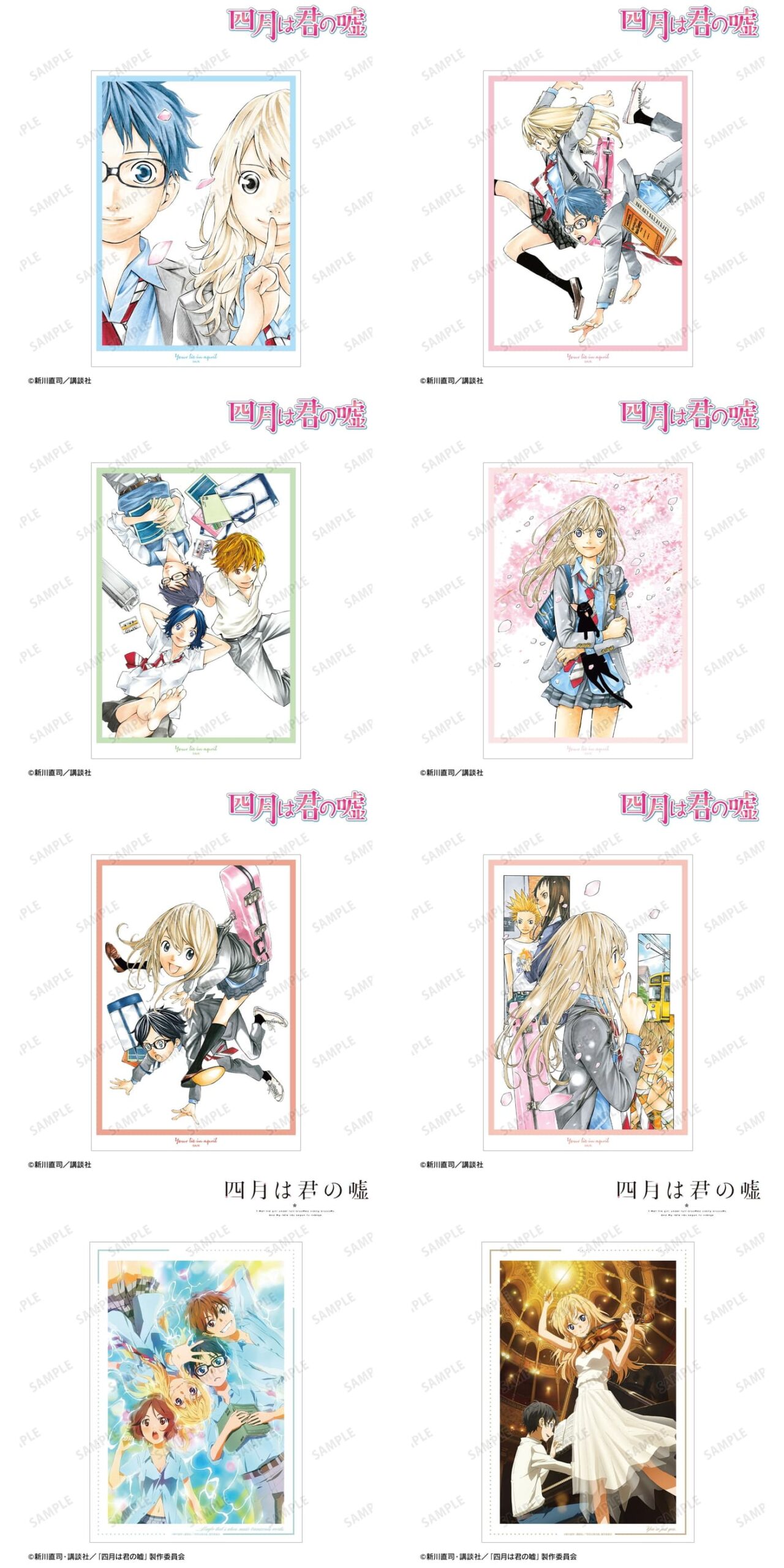 原作完結巻である11巻表紙イラストを使用した「アクリルパネル」をはじめ、有馬公生、宮園かをりら主要キャラに加え、相座武士、井川絵見、相座凪らも揃う「BIGアクリルスタンド」や「BIGアクリルキーホルダー」も展開される。