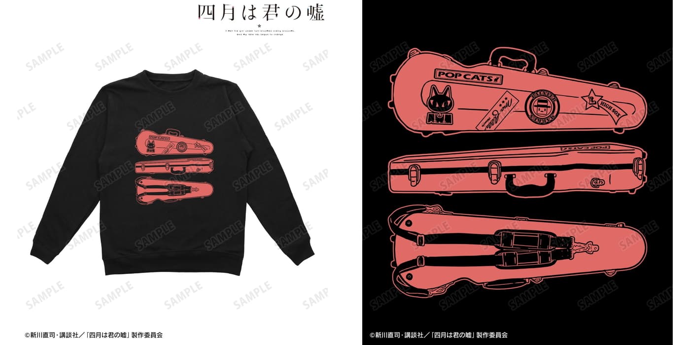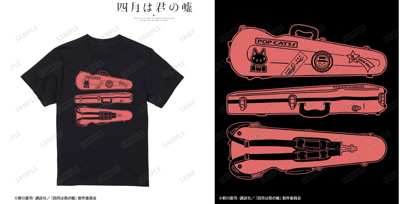 アパレル・雑貨類では、劇中で宮園かをりが使用するバイオリンケースをデザインした「トレーナー」や「Tシャツ」が登場。