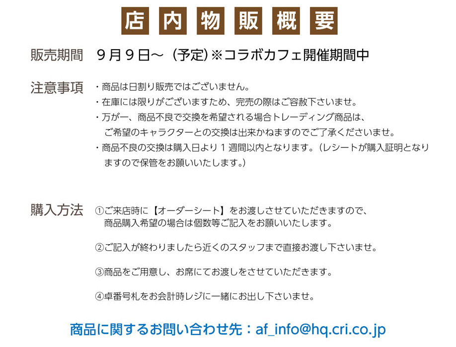 フード1品注文につきポストカード(全12種)をランダムに1枚プレゼント!