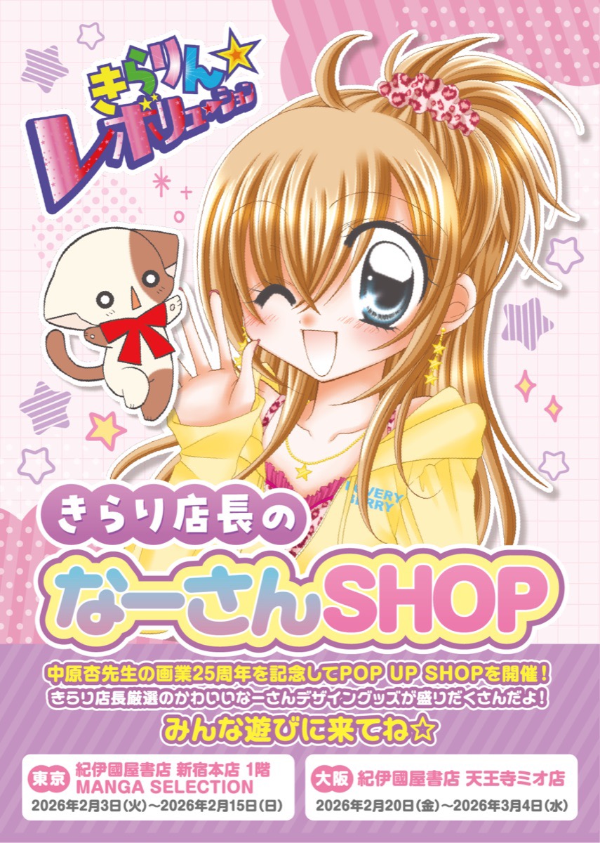 「ちゃお」に連載されTVアニメ化もされた、中原杏先生による人気漫画を原作とした「きらりん☆レボリューション」のポップアップストアが、紀伊國屋書店(東京/大阪)にて2026年2月3日〜3月4日まで開催される。 (※開催期間は店舗により異なります。)
