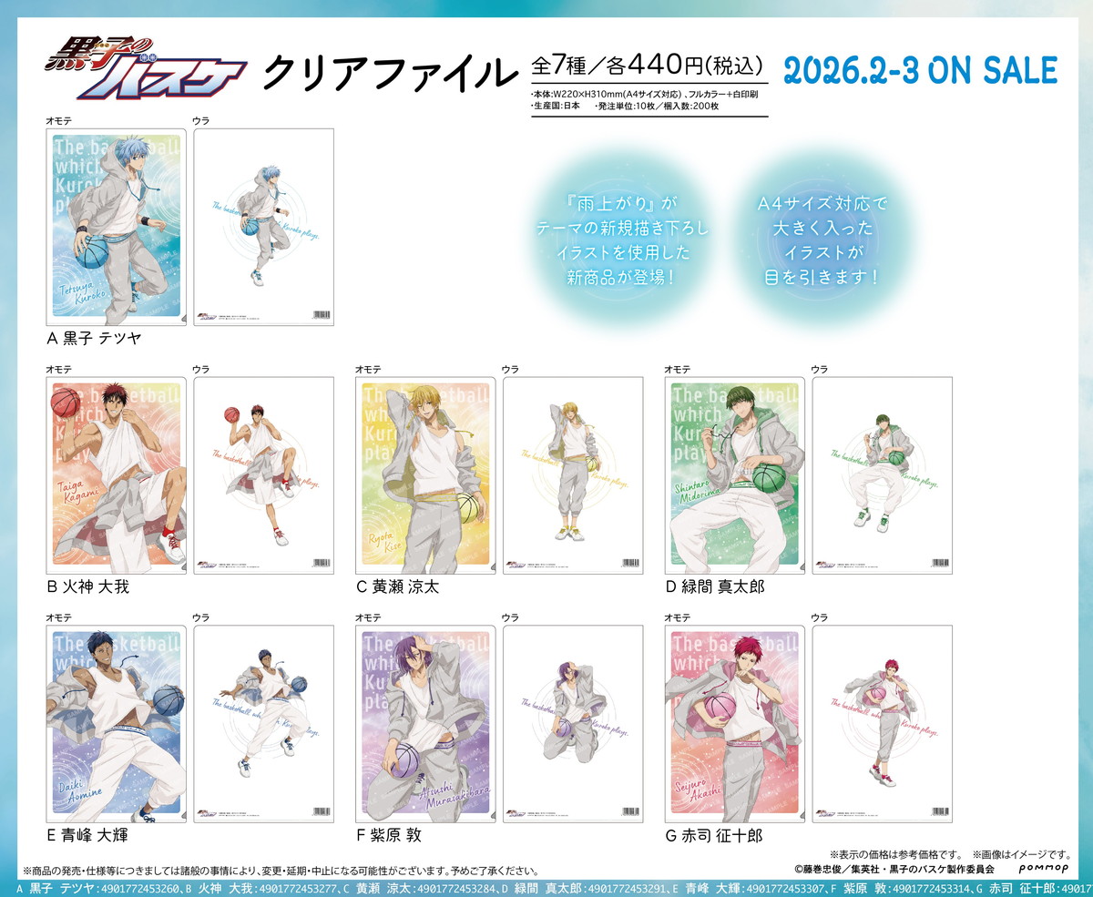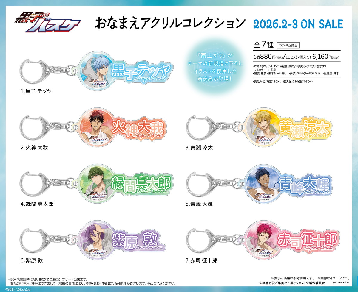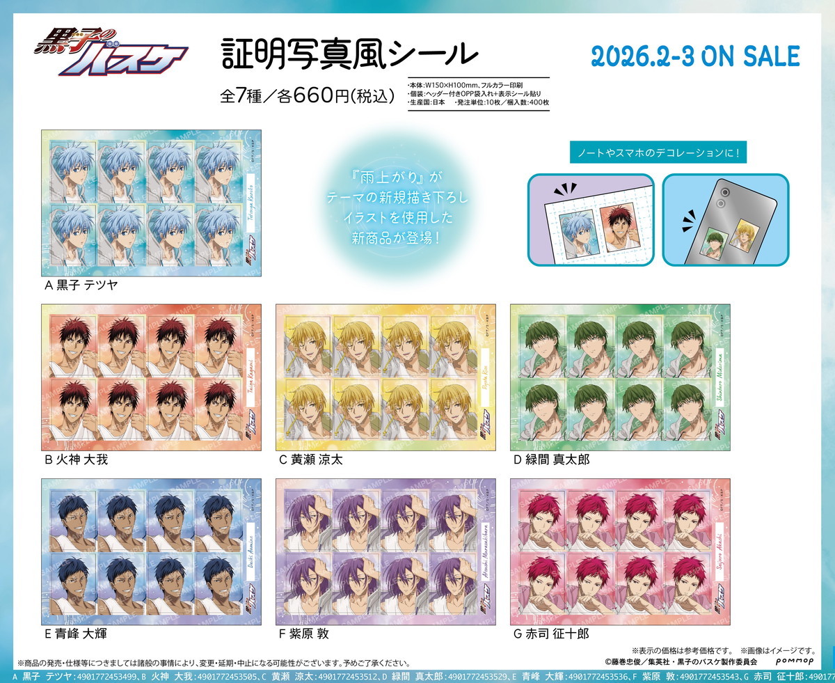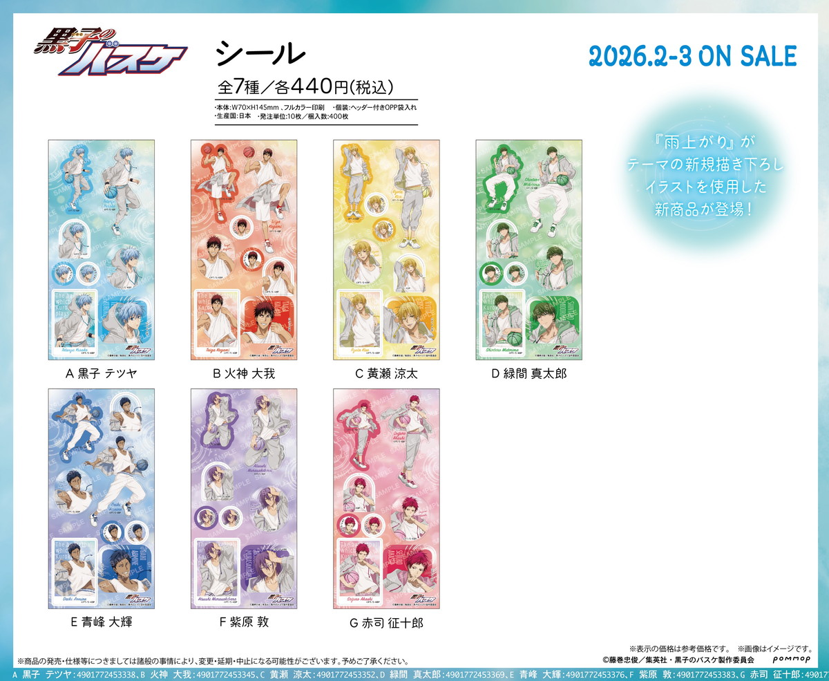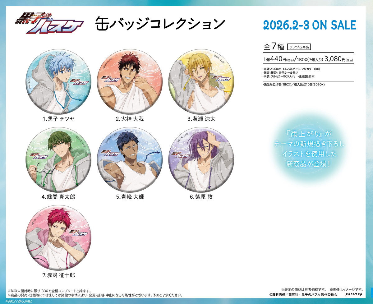 藤巻忠俊先生による人気漫画を原作としたアニメ「黒子のバスケ (黒バス)」から、「雨上がり」をテーマとする描き下ろしグッズが2026年2月に発売される。