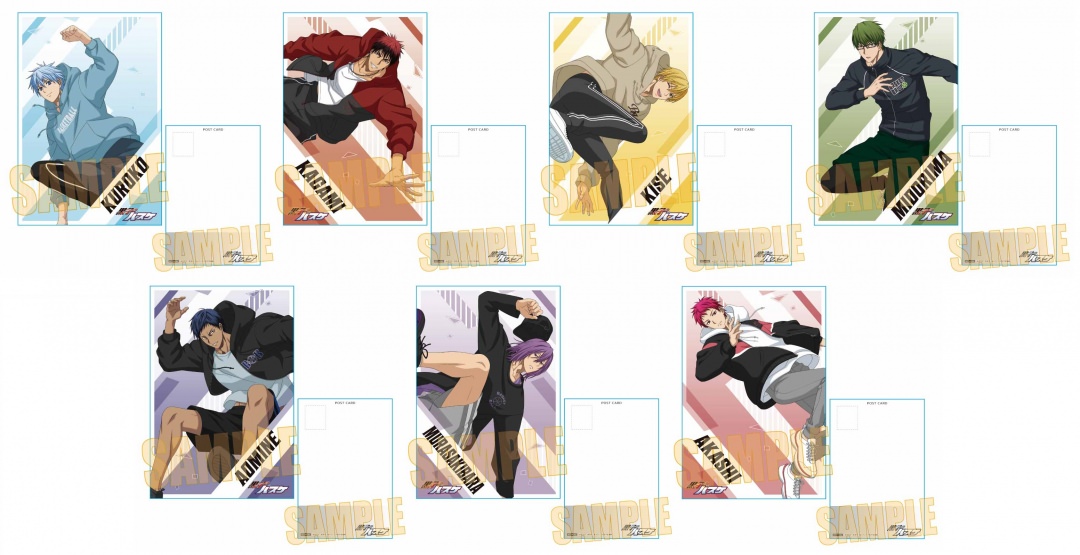 「黒子のバスケ」関連のグッズをお買い上げ1,100円(税込)ごとに特典として描き下ろしノベルティー「ポストカード 全7種」をランダムに1枚プレゼント!