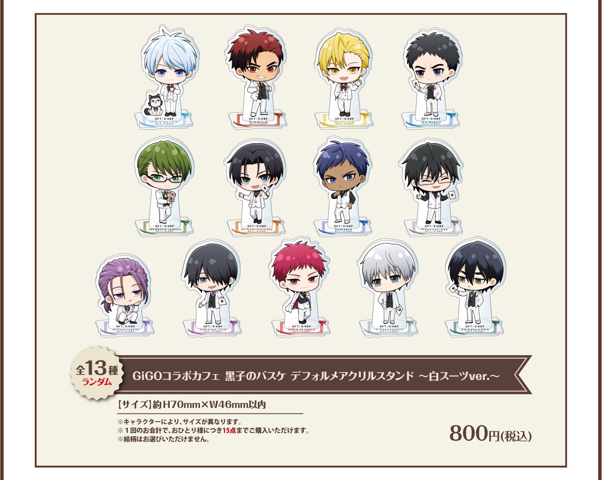 黒子や火神ら人気キャラクターをイメージしたコラボメニューがお楽しみいただける他、白スーツ姿の描き下ろしイラストを使用したコラボカフェ限定グッズが登場!