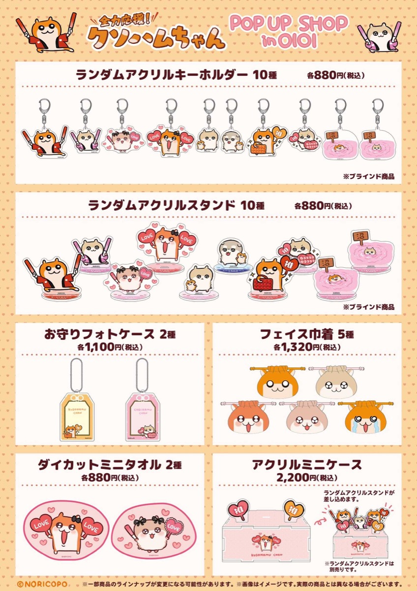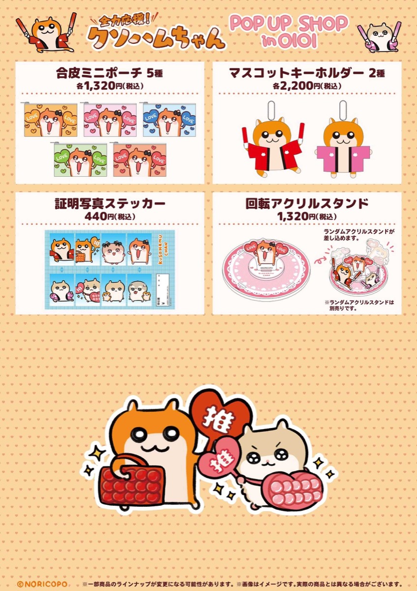 「クソハムちゃん」ポップアップストアでは、イベント限定の自称クソカワイイハムスター「クソハムちゃん」の応援と推し活をモチーフにしたイラストを使用した新作グッズが多数販売される。