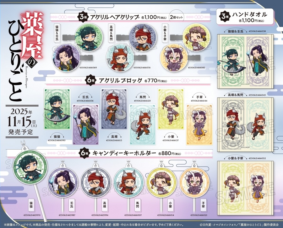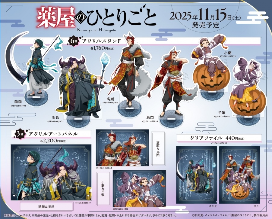 アニメ「薬屋のひとりごと」ポップアップストアでは、死神に扮した猫猫 & 壬氏など、2025年のハロウィン描き下ろしイラストを使用した新作グッズを多数販売。