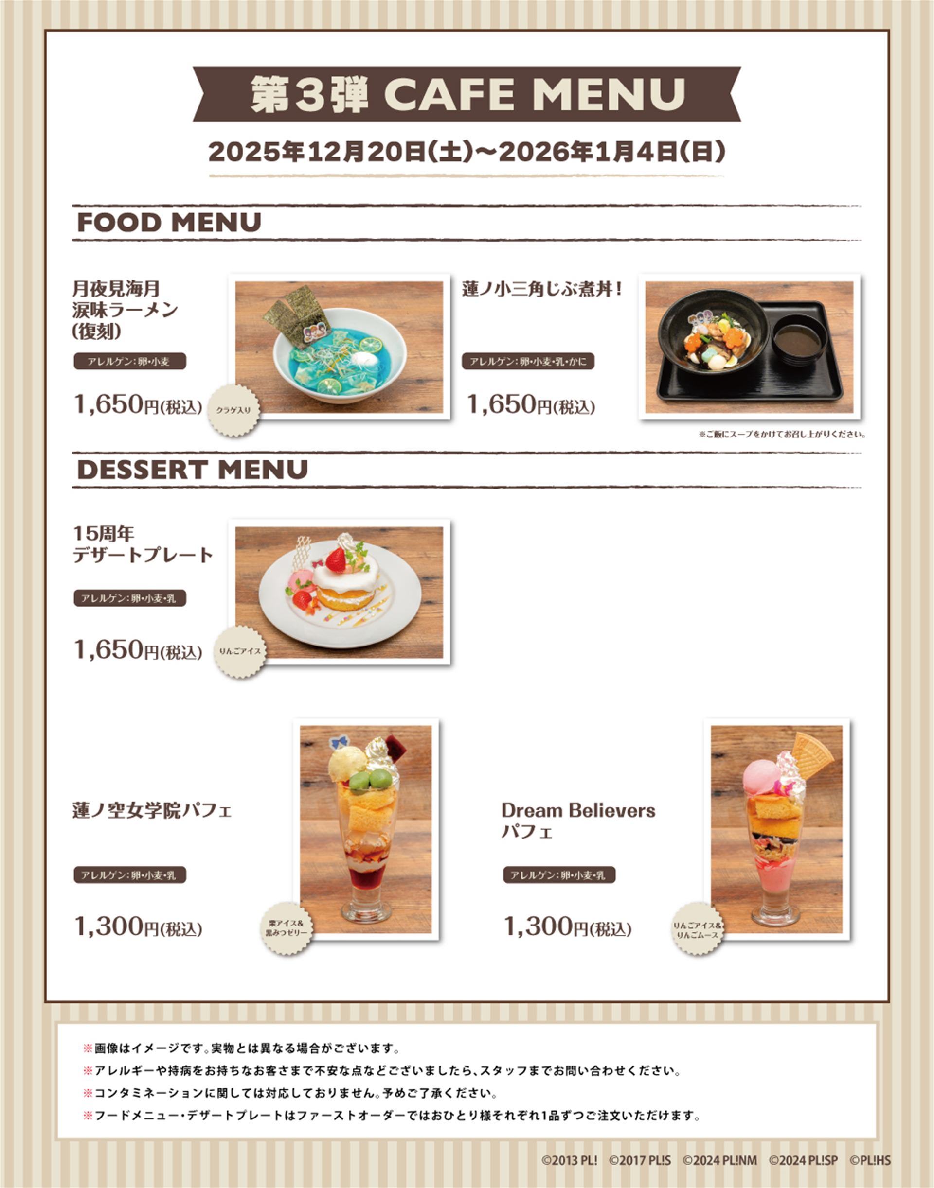 『GiGOコラボカフェ ラブライブ!シリーズ15周年記念 第3弾(蓮ノ空)』では、キャラクターや作品の世界観をイメージしたコラボメニュー、描き下ろしグッズが登場!
