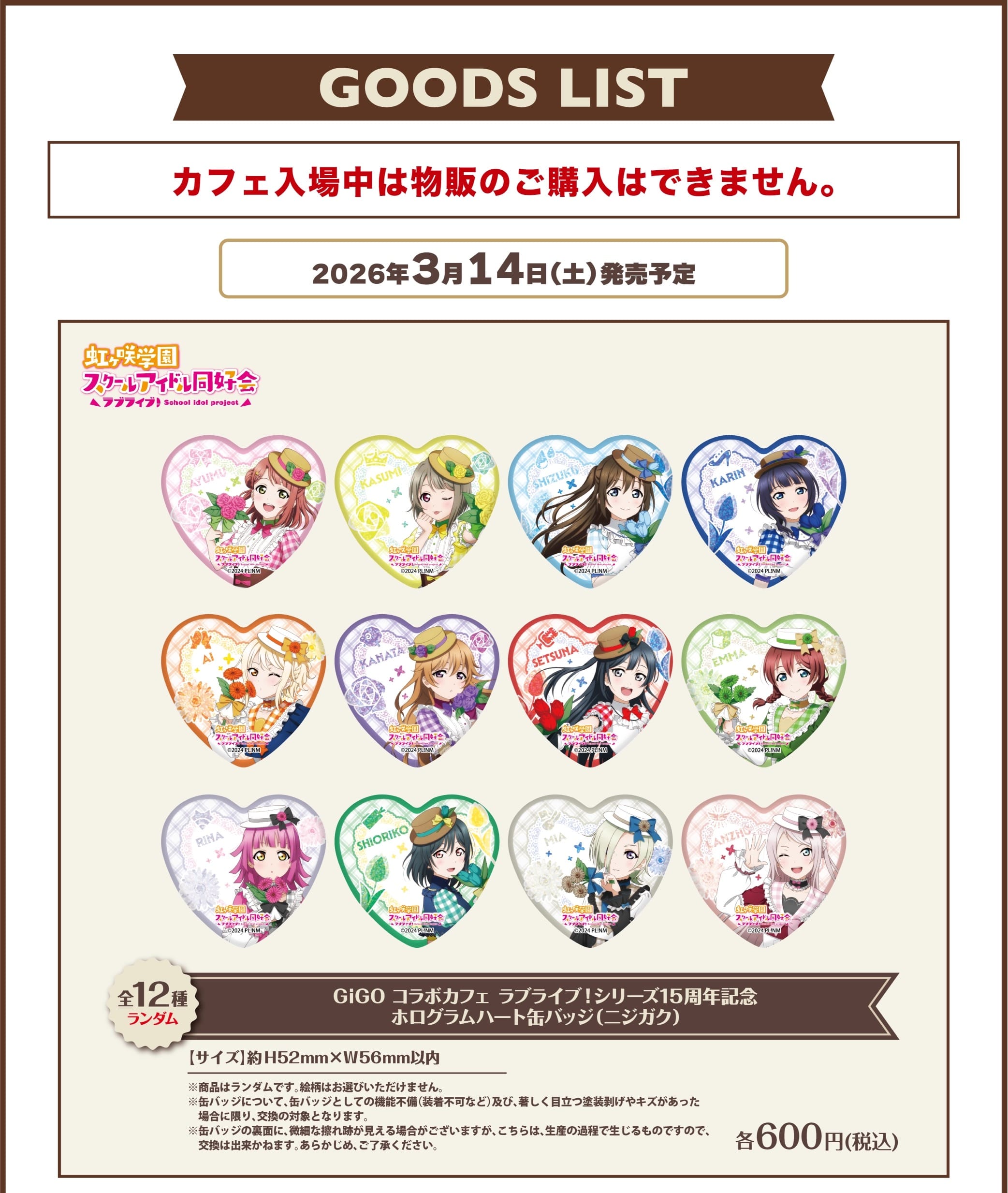 大人気スクールアイドルプロジェクトのシリーズ第3作「ラブライブ! 虹ヶ咲学園スクールアイドル同好会 (ニジガク)」× GiGOコラボカフェ秋葉原3号館にて2026年3月14日〜5月10日までコラボカフェ「GiGOコラボカフェ『ラブライブ!シリーズ15周年記念』第5弾(ニジガク)」が開催。
