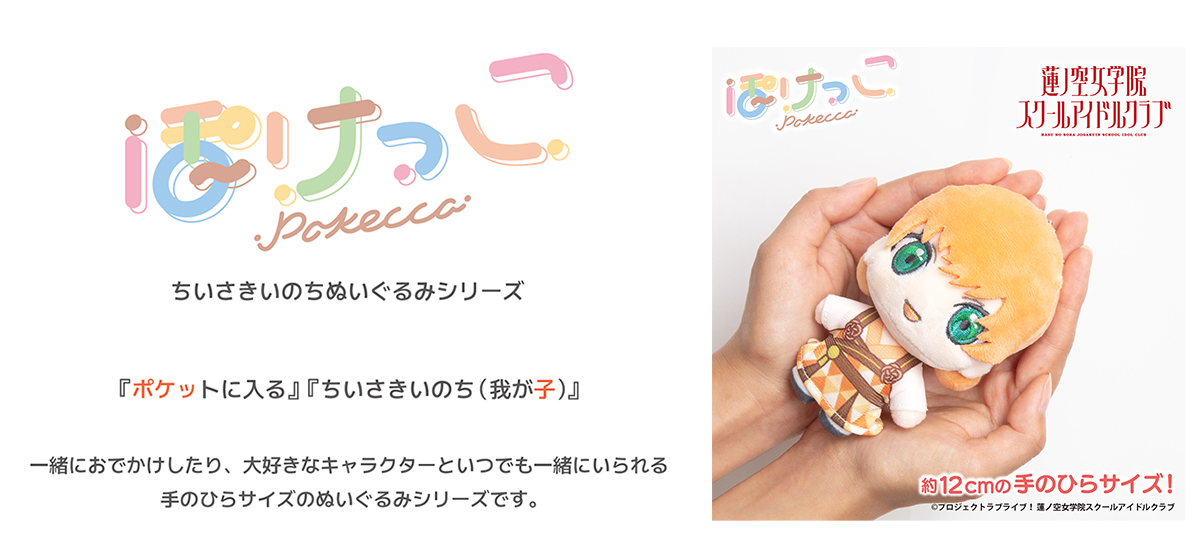 ポケットに入る『ちいさきいのち (我が子)』をコンセプトとしたDMM Factoryのオリジナルぬいぐるみシリーズ「ぽけっこ」より、日野下花帆、村野さやか、乙宗梢、夕霧綴理、大沢瑠璃乃、藤島慈、百生吟子、徒町小鈴、安養寺姫芽ら蓮ノ空メンバー9人が新登場。