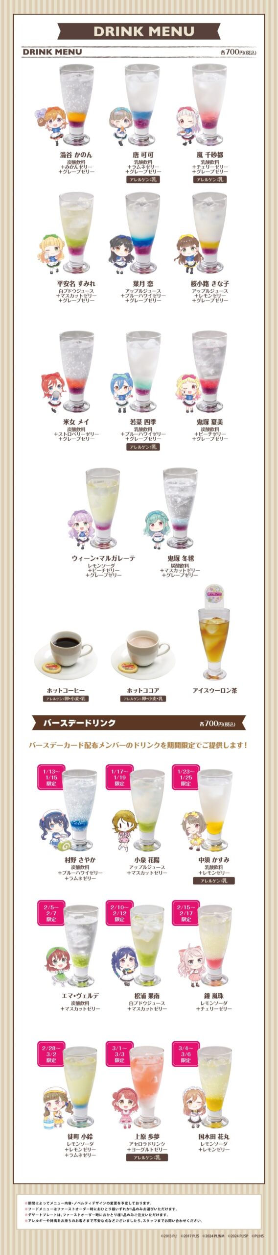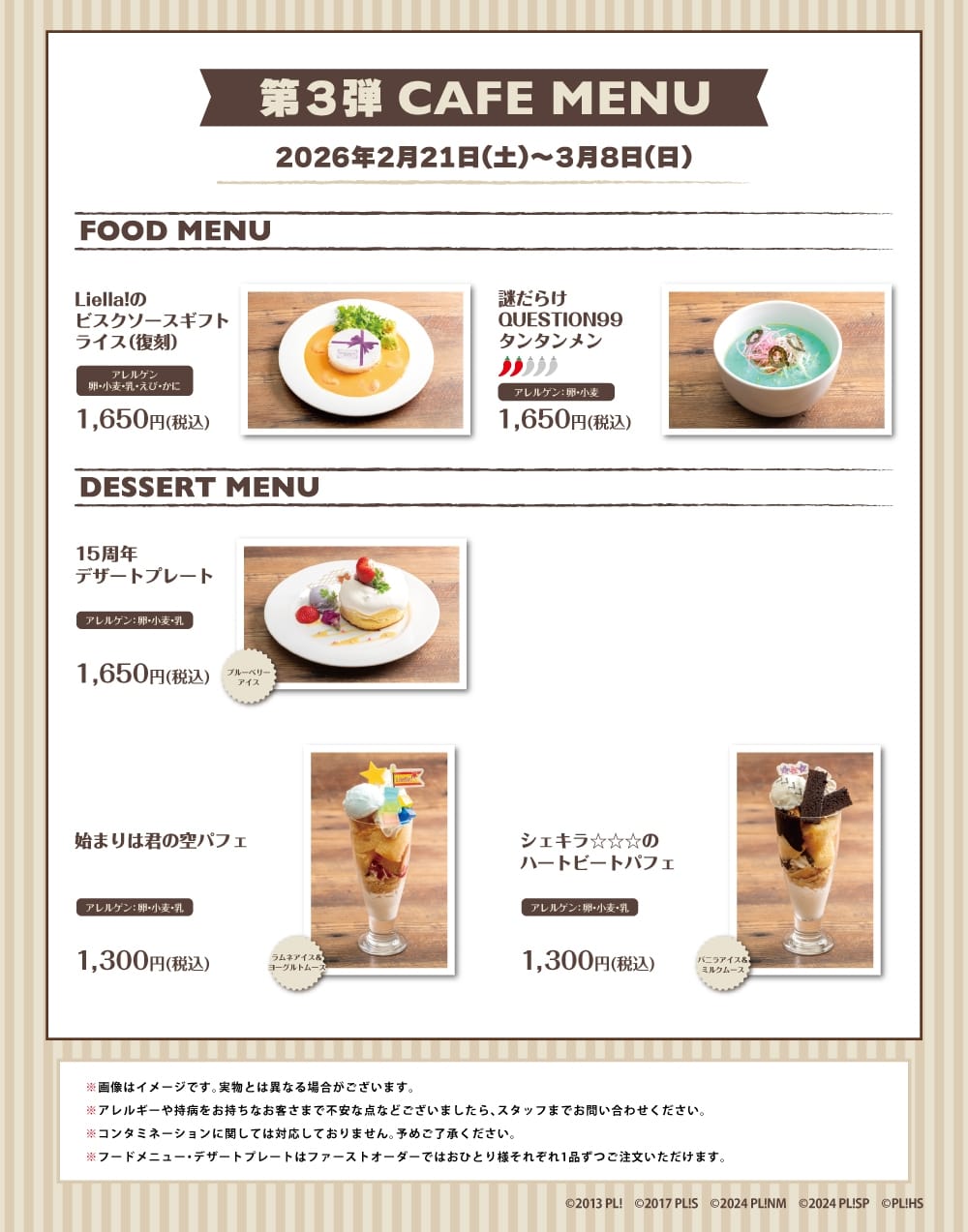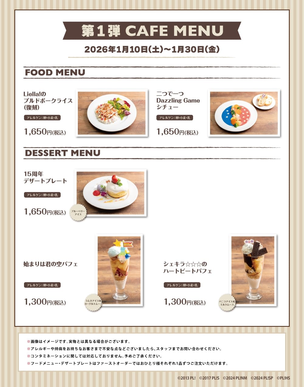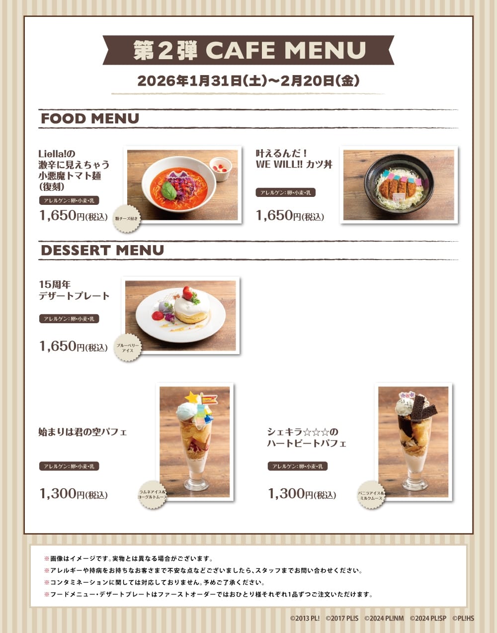 ラブライブ! 15周年カフェ第4弾 in 秋葉原のメニュー