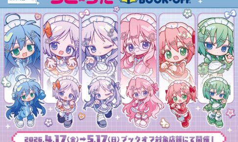 2026年4月17日より全国一部のブックオフにて開催される「らき☆すた」コラボでは、イラストレーターの「さかな」さんが新たに描き起こしたミニキャライラストのグッズが多数ラインナップ!