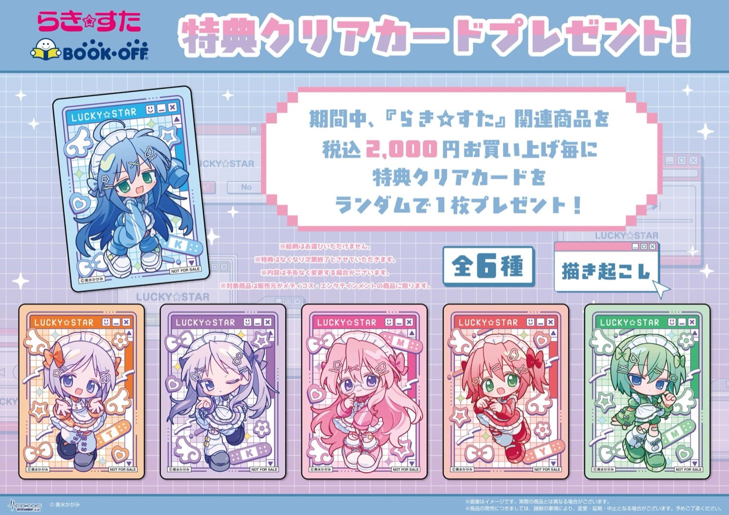「らきすた × ブックオフ」コラボにて関連グッズを2,000円 (税込) 購入ごとに、特典として「クリアカード 全6種」をランダムで1枚プレゼント!