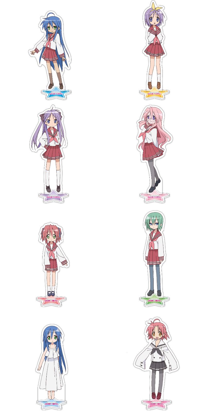 コラボカフェ編集部おすすめグッズは、泉こなた、柊つかさ、柊かがみ、高良みゆき、小早川ゆたか、岩崎みなみ、泉かなた、小神あきら達8人の立ち絵姿を楽しめる「アクリルスタンド」。 インクジェット印刷で美しい仕上がりのアクスタを是非お迎えください。