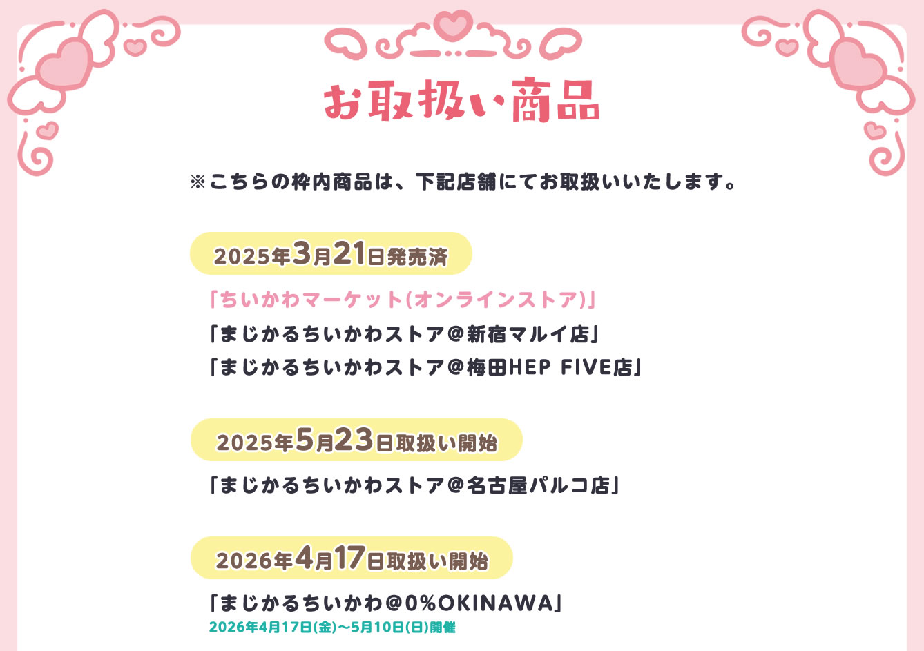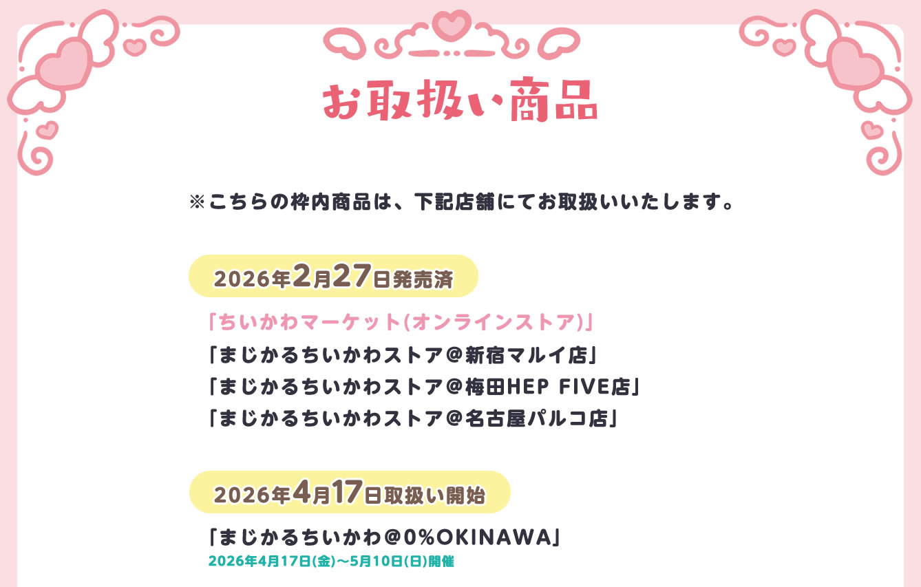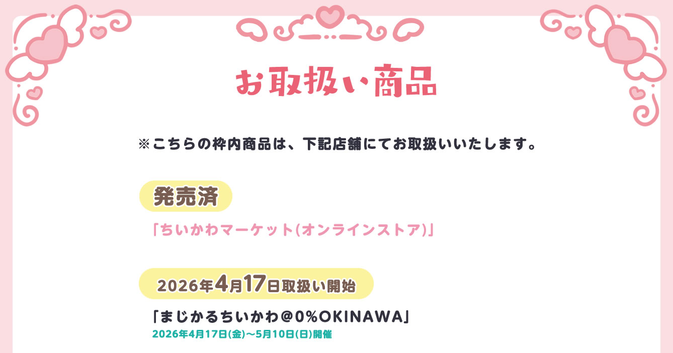 2026年4月17日より「イオンモール沖縄ライカム」にて、「ちいかわ (なんか小さくてかわいいやつ)」のポップアップストアを開催!