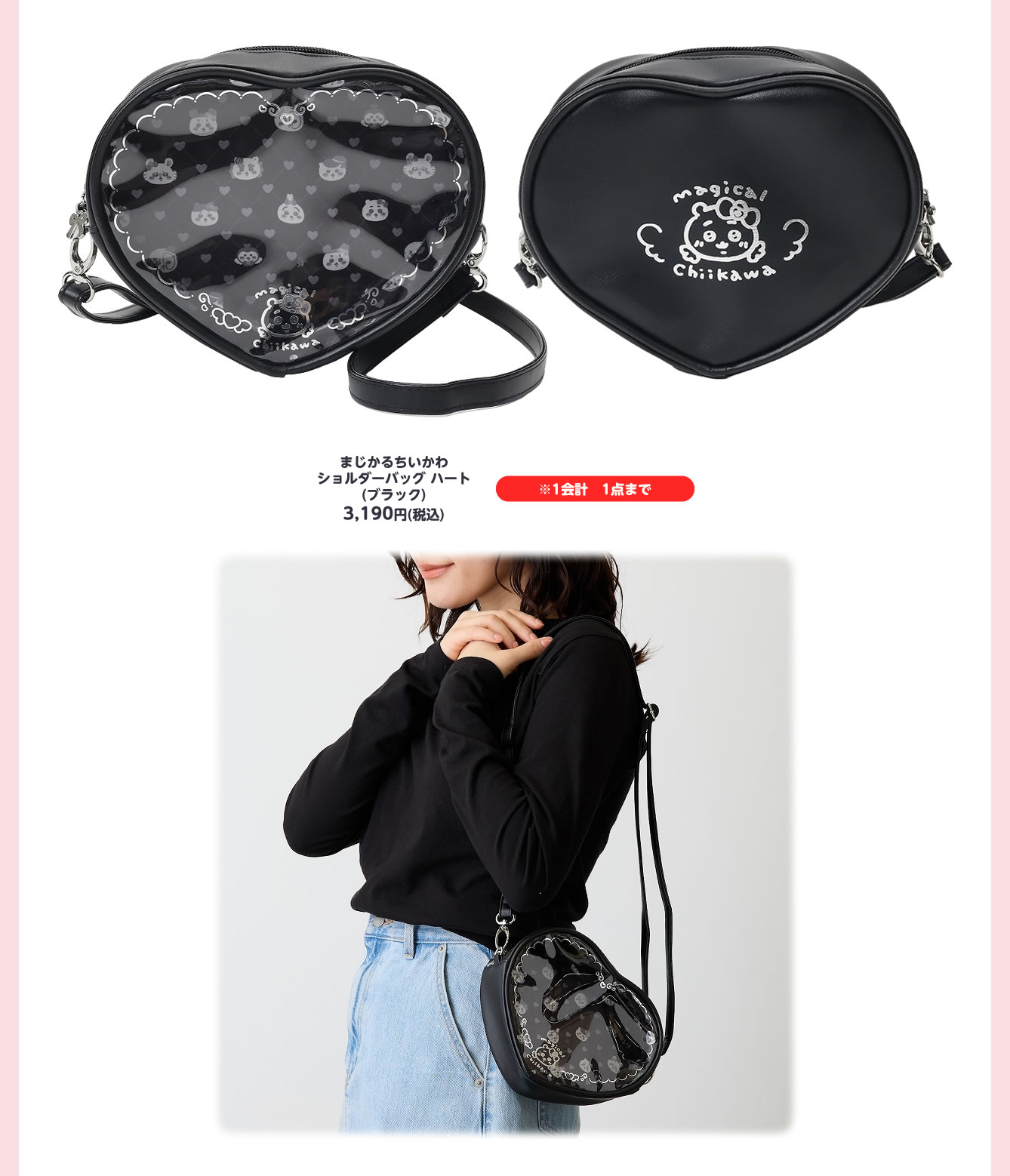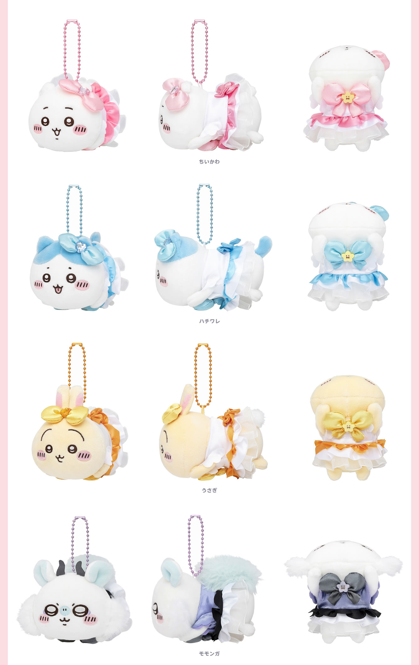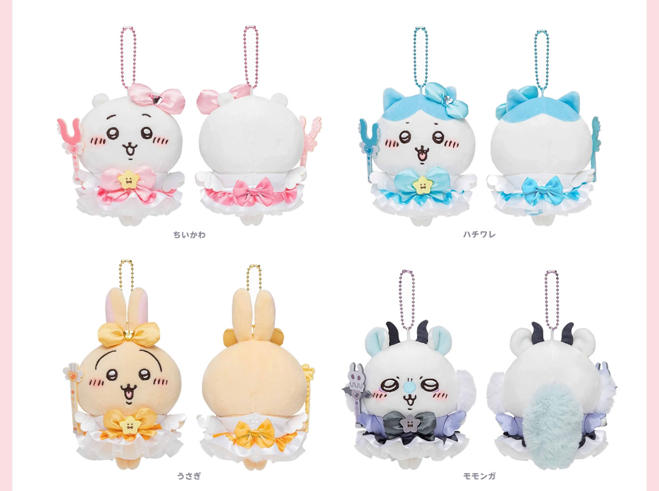 魔法少女アニメ風衣装に身を包む、ちいかわ・ハチワレ・うさぎ・モモンガ・古本屋・シーサー・くりまんじゅう・ラッコたちのデザインを使用した「まじかるちいかわ ショルダーバッグハート(ブラック)」「まじかるちいかわ マジカルチャージマスコット」「まじかるちいかわ ぷちミニマスコット」などがラインナップする。