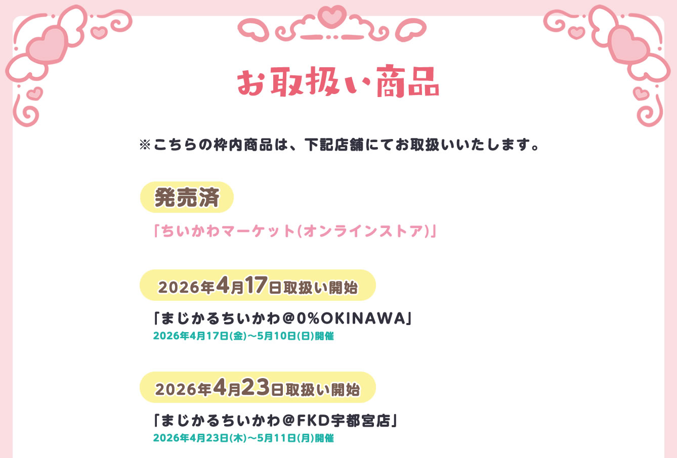2026年4月23日より「FKD宇都宮店」にて、「ちいかわ」のグッズを販売するポップアップストアを開催!